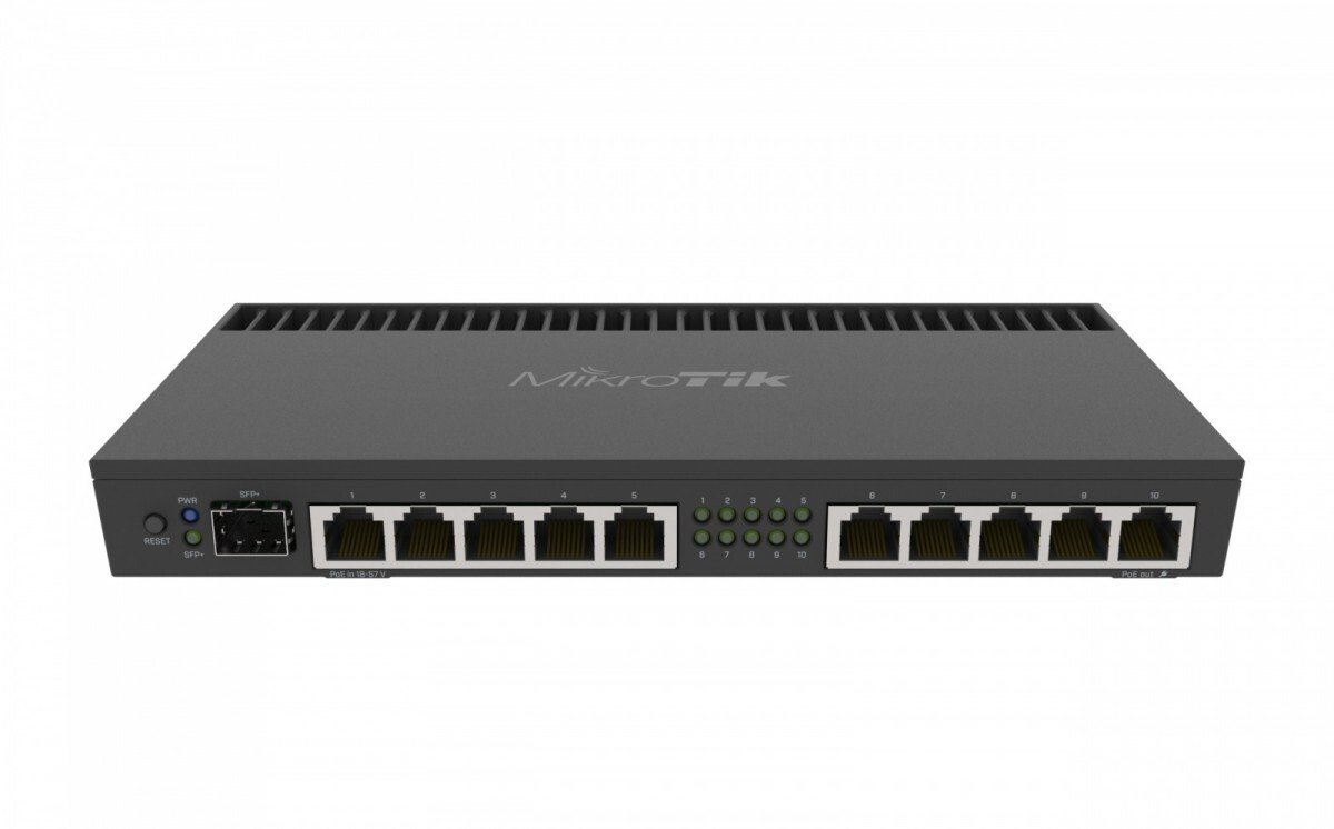 RB5009UPr+S+OUT An outdoor version of our best-selling heavy-duty PoE router. Extensive power redundancy for the best price! 7x Gigabit Ethernet ports, 1x 2.5 Gigabit Ethernet, 10G SFP+, 1GB of RAM, 1GB NAND, modern quad-core CPU, 9 (!) powering options, durable IP66 waterproof enclosure.