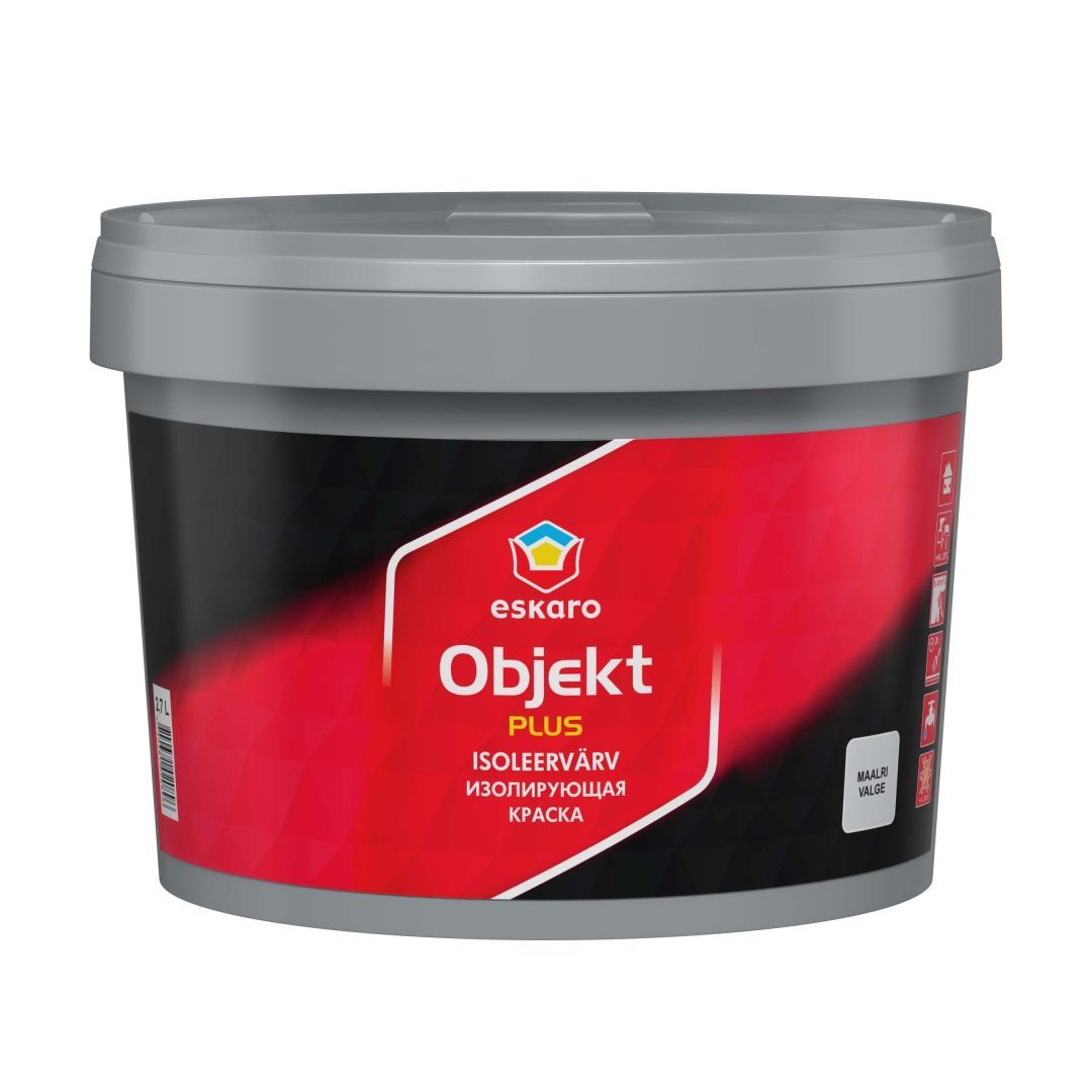 Eskaro OBJEKT PLUS - matt vesialuseline isoleeriv kruntvärv määrdunud lagedele ja seintele sisetöödel. Ei toonita. Valmistoon maalrivalge. Suurepärase kattevõimega, kiiresti kuivav, kergesti lihvitav. Isoleerib hästi plekid: nikotiin, tahm, suits, pigi, rooste, rasv, olmesaaste, grafiti, tanniin ja veekahjustuste jäljed. Hoiab ära pinna kolletumise. Sobib kohtkruntimiseks. Üle värvitav vesialuseliste värvidega (N. Akrit, Akzent, Cinderella, Mattilda, ESK PRO jt).
