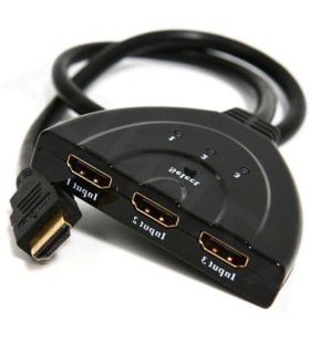 The GefenTV 4x1 Switcher for HDMI with RS232 switches between any of four Hi-Def sources to one HDTV display. Resolutions up to 1080p Full HD with multichannel digital audio are supported. The front panel LEDs show the currently selected source. This 4x1 Switcher has an auto-switching feature: If a new source is connected or turned on, the Switcher will automatically switch to that input. The 4x1 Switcher will revert to the previous input once the current device is turned off or disconnected. Any of the four Hi-Def sources can be selected by the push-button, IR remote control, or using the RS-232 control.