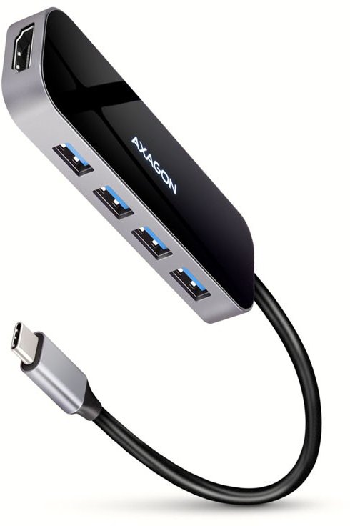 | Arvutitark OÜ | Axagon AXAGON HMC-6H4A Hub 4x USB-A + HDMI PD 100W  Tootekood: HMC-6H4A GTIN: 8595247907028 Pordilaiendid (dokid) Multiport USB-C 3.2 Gen 1 hub AXAGON HMC-6H4A expands your laptop, computer or phone with six ports. You can easily and quickly connect up to four USB devices and HDMI display to your computer at the same time via the double-sided USB-C connector. You also get the possibility to supply laptop using Power Delivery technology. The USB-C hub will provide you with a simple and compact 6in1 docking station for notebook like MacBook Pro. The USB hub offers four USB outputs with standard USB-A connectors. The hub can also handle permanent connection of several external drives simultaneously. Transfer rate up to 5Gb/s thanks to the fast USB 3.2 Gen 1 interface. USB-C connector is dedicated to power up a mobile phone or laptop using Power Delivery 3.0 technology by power up to 100W. Connect the USB-C Power Delivery charger to the hub and connect the hub to the laptop. This saves one USB-C port. The condition is a laptop with Power Delivery charging support from the USB-C port and a suitable PD charger. HDMI output provides high quality image up to 4K/30Hz Ultra HD resolution and supports multi-channel audio transmission. Popular gaming resolution WQHD 2560 x 1440px at 60Hz or FullHD 1920 x 1080px at 60, 100 and 120Hz max. are also supported. DisplayPort Alternate Mode (DP Alt Mode) enabled USB-C port or Thunderbolt 3 port is necessary for the proper function of video output. Elegant aluminum body ensures mechanical resistance and quality cooling. The glossy upper part with a decent backlit logo underlines the premium look of the hub. Port replicator is an ideal accessory for laptops without USB-A connectors and video output. You can use your current USB peripherals without having to purchase new ones. Thanks to the Plug and Play and Hot Plug functions, connecting the hub itself is very simple without complicated installation, and peripherals can also be easily connected and disconnected while the computer is running. The hub does not afraid of connection to phones with a USB-C connector. You can connect a flash drive, keyboard, mouse, monitor, TV or projector to your phone. Input: 1x USB 3.2 Gen 1 / SuperSpeed USB port, USB-C male connector. Backward compatible with USB 3.1 Gen 1 / USB 3.0 and USB 2.0. Compatible with Thunderbolt 3. Connecting USB type C male connector on a fixed 20cm long cable. USB outputs: 4x SuperSpeed USB port, USB-A female connector. 1x USB type C Power Delivery port (only charging), USB-C female connector. Supports transmission rates 5.000 / 480 / 12 / 1.5 Mb/s (SuperSpeed / High / Full / Low speed). The total bandwidth / transmission rate of the box is determined by the USB 3.2 Gen 1 interface used (theoretically up to 5 Gbit/s). USB-C hub can handle the connection of several external drives at the same time. HDMI output: HDMI. HDMI A (F) female connector. Maximum supported resolution 4K / 4096 x 2160 at 30 Hz. WQHD resolution 2560 x 1440 at 60 Hz max. FullHD resolution 1920 x 1080 at 60, 100, 120 Hz max. DisplayPort Alternate Mode (DP Alt Mode) enabled USB-C port or Thunderbolt 3 port is necessary for the proper function of video output. At the same time, support from the device (laptop, phone) and the operating system is required. The video output function will not be available without these requirements. HPD (Hot-Plug-Detect) support. TMDS (Transition Minimized Differential Signalling) support. HDCP 1.4 and 2.3 (High-bandwidth Digital Content Protection) support. Support up to 8-channel LPCM audio, compressed audio (AC-3, DTS) and HBR audio formats. Support sampling rate up to 192kHz and up to 24-bit audio depends on source and end device, i.e. laptop/phone and TV/monitor/ AV receiver. Power Delivery: Power Delivery 3.0 support device power supply from the wall charger via USB-C hub. Maximum power supply power via PD USB-C hub output 100W - 20V/5A. Required PD support from the device (laptop, phone) and a suitable PD wall charger. Other features: Possibility to connect your device while running thanks to the Hot Plug support. Full Plug and Play support. Standby mode support. Power via USB bus - USB bus power or from PD wall charger. Heavy-duty aluminum body for better hub cooling. Higher surface hub temperature is not a problem - the heat generated by the hub operation is better dissipated and transferred to the surroundings. The backlight of the logo indicates with a permanent glow that the hub is connected to the computer. The high quality shielded cable ensures high communication speed and minimal undesirable interference. Dimensions 110 x 35 x 12 mm. Weight 54 g (incl. cable). USB cable length 20 cm. Supported operating systems: Microsoft Windows 10 / 11, Mac OS, Linux, Android and Chrome OS. Compatibility depends on used OS and support from device manufacturer. Note 1: Drivers are included with supported operating systems and are installed automatically. No other drivers need to be installed. Note 2: DisplayPort Alternate Mode (DP Alt Mode) is only supported in updated OS and also depends on support from device (notebook, phone) manufacturer. Package contains: USB-C hub with fixed 20 cm long cable, multilingual manual CZ / DE / DK / ENG / ESP / FIN / FR / GR / HR / HU / IT / NL / PL / PT / RO / RU / SK / SWE / BG / CN / TR / ARA, packed in a cardboard box with a hanging hole.  | 29,50 € | Poodi | ||