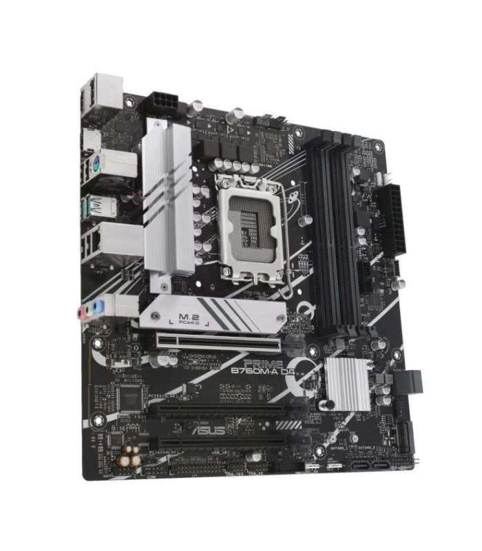 <p><strong>PRIME B760M-A D4-CSM</strong><br /> Intel® B760 (LGA 1700) mATX motherboard, PCIe 4.0, two M.2 slots, Realtek 2.5Gb Ethernet, DisplayPort, Dual HDMI®, SATA 6 Gbps, rear USB 3.2 Gen 2, front USB 3.2 Gen 1 Type-C®, Aura Sync </p><ul> <li>Ready for Advanced AI PC: Designed for the future of AI computing, with the power and connectivity needed for demanding AI applications</li> <li>Intel® LGA 1700 Socket: Ready for 14th, 13th and 12th Gen Intel® processors</li> <li>Ultrafast Connectivity: PCIe 4.0, two M.2 slots, Realtek 2.5Gb Ethernet, rear USB 3.2 Gen 2, front USB 3.2 Gen 1 Type-C®</li> <li>Comprehensive Cooling: VRM heatsink, M.2 heatsink, PCH heatsink, hybrid fan headers and Fan Xpert 2+</li> <li>ASUS OptiMem II: Careful routing of traces and vias, plus ground layer optimizations to preserve signal integrity for improved memory overclocking</li> <li>Aura Sync RGB Lighting: Onboard Addressable Gen 2 headers and Aura RGB header for RGB LED strips, easily synced with Aura Sync-capable hardware</li> <li>ASUS Control Center Express: Real-time IT monitoring and management software for enhanced data protection</li> </ul>