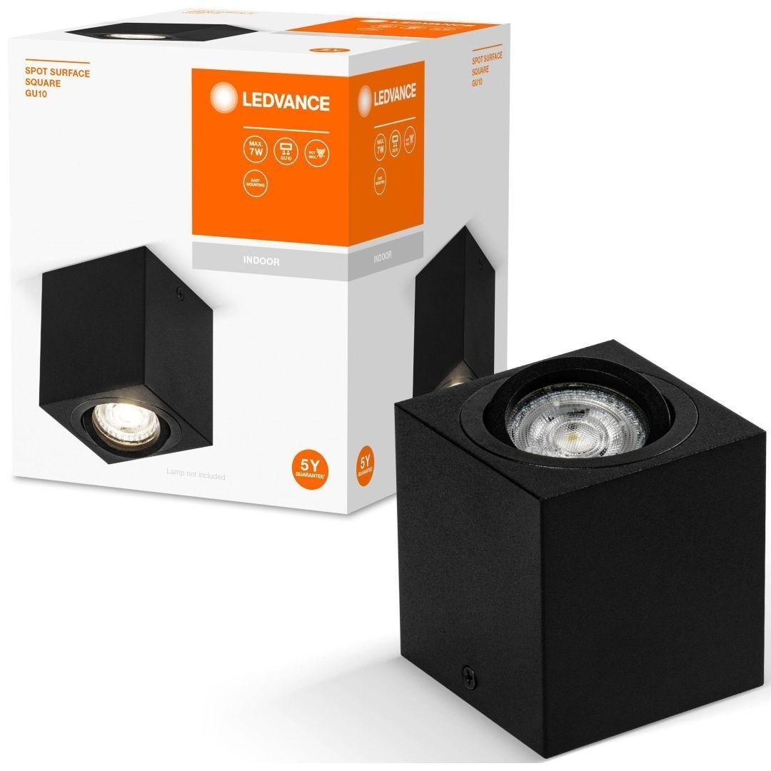 Ledvance kohtvalgusti Square. Valgusallika toitepinge on 220…240 V, sokkel GU10. Kaitseklass on IP20. Valgusti mõõtmed on 8 x 8 x 9,5 x cm. Komplekti ei kuulu valgusallikas. Värv: must.