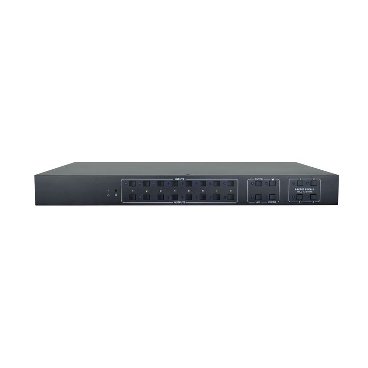 <div> Vahetamine 8 HDMI-allika seadme ja 8 samaaegselt ühendatud HDMI-kuvari vahel</div> <div> Toetab kuni 4K 60 Hz resolutsiooni, lisaks toetab HDR-i.</div> <div> Väljavõte heli HDMI-st SPDIF-i, et ühendada see võimenditega ja kõlarisüsteemidega.</div> <div> EDID-haldussüsteem optimaalse resolutsiooni kontrollimiseks ja tagamiseks</div> <div> 2-aastane garantii</div> <div> </div> <div> </div> <div> Matrix Switches on kõrgekvaliteedilised lahendused sisu levitamiseks mitmest allikaseadmest mitmele kuvarile. Lindy 8x8 HDMI Matrix Switch Pro toetab HDMI 2.0 18G signaale, mis võimaldab edastada selgeid 4K Ultra HD 60Hz eraldusvõimalusi. Täiendav toetus High Dynamic Range'ile tagab, et videosisu kuvatakse suurema heleduse, suurema kontrasti ja palju laiema värvigammaga, mis sobib ideaalselt digitaalsetele kuvaritele jaekaubanduses, informatiivsete mitme kuvariga komplektide loomiseks hariduses või sisu levitamiseks kommertspaigaldistes, näiteks kinodes. HDCP 2.2 tugi tagab, et mitmesuguse 4K-sisu puhul ei teki probleeme, kui see on ühendatud allikaseadmetega, sealhulgas digibokside, Blu-Ray-mängijate ja 4K HDR-meediamängijatega.</div> <div> </div> <div> </div> <div> </div> <div> Lisaks HDMI audio läbipääsule võimaldavad individuaalsed SPDIF-portid eraldi ühendada digitaalseid kõlarisüsteeme ja võimendeid, luues videosisu täienduseks kaasahaarava audioelamuse.</div> <div> </div> <div> Seda Matrixi saab hõlpsasti juhtida seadme nupuvahetuse kaudu, samas kui kaasasolev kaugjuhtimispult ja IR-pikendus võimaldavad kasutajal paremini kontrollida ka mitut videot ja ekraani, mis sobib suurepäraselt messidel, koolitusettekannetes või müügiesitlustel.</div>