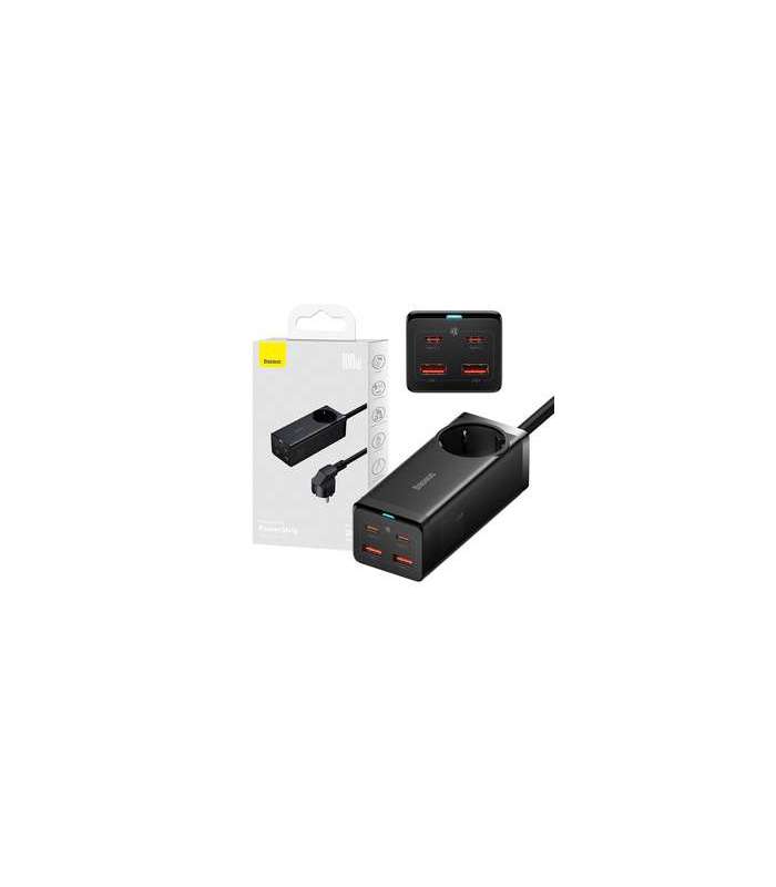 | Arvutitark OÜ | Baseus GaN3 Pro 100W 2xUSB + 2xUSB-C + AC Wall Charger/Powerstrip (Black) Tootekood: PSZM000401 GTIN: 6932172604233 Phone chargers Baseus GaN3 Pro mains charger / power strip (black)Quickly and safely charge your devices with the Baseus GaN3 Pro mains charger / power strip! The product is equipped with 4 charging inputs that offer charging with a maximum power of 100 watts. It also has an AC outlet, which allows you to connect a projector or an electric kettle to electricity, among other things. An advanced protection system ensures the highest level of safety during use. The 1.5m power cable will give you more freedom, while the USB-C/USB-C charging cable you'll find in the set will make charging easier.Instantly renew the energy in your devicesForget about the long wait for your phone or laptop to charge! The charger allows you to charge with up to 100 watts of power! As a result, you can renew 100% energy in your MacBook Pro 2021 16" in about 2.5 hours. In addition, you will find in the set a practical USB-C/USB-C cable, with the help of which you can charge your iPhone 13 Pro Max, among others, in no time.As many as 5 devices at the same timeNeed to charge several different equipment at the same time? No problem! The charger offers as many as 4 USB ports - 2x USB-C and 2x USB, as well as 1 built-in AC outlet. Thus, you will successfully supply energy to up to 5 devices at the same time. You can connect to it a projector, electric kettle, laptop, smartphone, tablet or Nintendo Switch console, among others.Innovative solutionThe improved GaN3 Pro technology offers higher chip integration and power conversion, resulting in higher device performance. In addition, the use of this technology has also influenced the size and weight reduction of the strip.Multi-level protectionYou don't have to worry about safety! The charger has been designed in such a way that using it is completely safe and charging is instantaneous. The product is equipped with special electric shock protection, which will effectively protect you from a shock, for example, when connecting a fan to a power strip. Durable materials from which it was made are resistant to damage and heat.Includedmains charger / power stripUSB-C/USB-C cableModelPSZM000401Rated voltage250V, 50/60HzRated power4000 W MaxRated current16A MaxInput currentAC 200-240V, 50/60Hz, 2.5A MaxOutput currentUSB-C 1/2: 5V/9V/12V/15V⎓3A, 20V⎓5AUSB1/ USB2: 5V/9V/12V/20V⎓3AUSB-C1 + USB-C2: 65 W + 30 W / 30 W + 65 WUSB1 + USB2: 5V⎓3AUSB-C 1/2 + USB 1/2: 65 W+30 WUSB-C1 + USB-C2 + USB 1/2: 60 W + 20 W + 18 WUSB-C1 + USB-C2 + USB1 + USB2: 60 W + 20 W + 15 WPower cord length1.5 mDimensions121 x 48 x 41 mmWeightapproximately 513 gColorBlack | Kohal | 64,90 € | Poodi | |