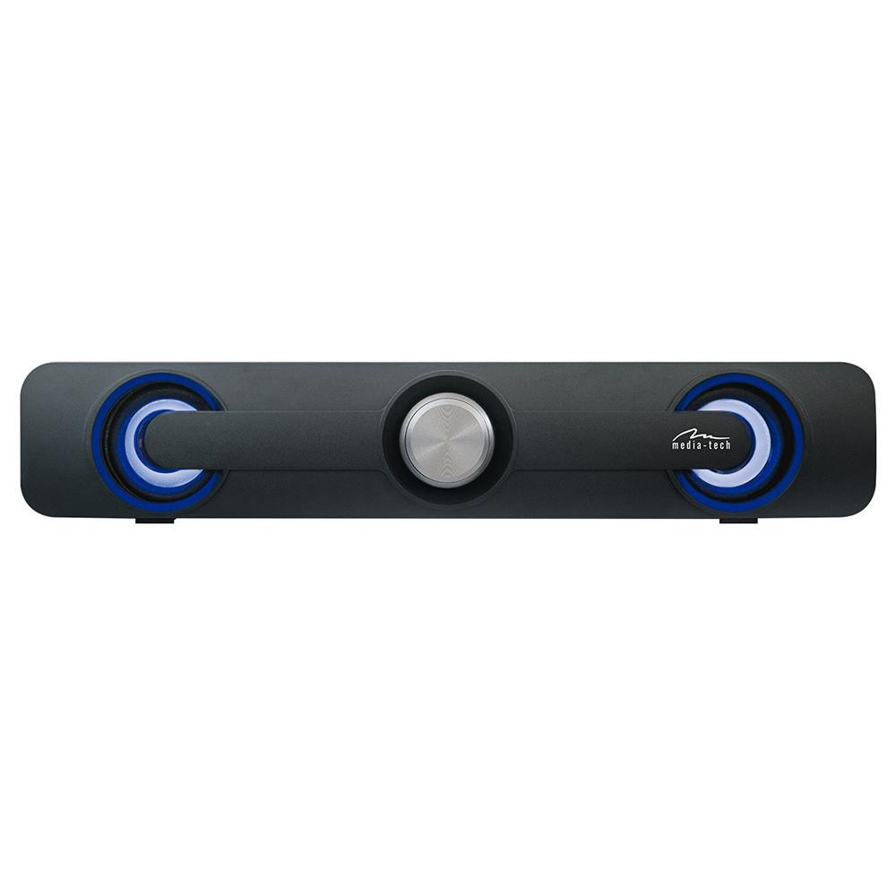 Horizontal soundbar SOUNDBAR MT3173 is a horizontal stereo speaker. It is equipped with magnetically shielded speakers with a total power of 5W RMS. Sound from SOUDBAR it is clean, and the low and high tones perfectly harmonize with each other, giving us the satisfaction of listening to our favorite songs. Universal and multifunctional soundbarThe horizontal housing of the loudspeaker makes it a good complement to computer sets and TV sets. The volume can be adjusted using a centrally located knob, which is also an on / off switch. SOUNDBAR has the function of illuminating the speakers in blue. SOUNDBAR MT3173 it has a USB plug (responsible for power supply) and a 3,5 "jack with which to connect the sound source.