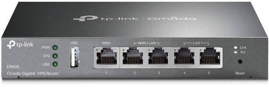 | Arvutitark OÜ | TP-LINK ER605 GE Multi WAN Router Tootekood: ER605 GTIN: 6935364089597 Routers Omada Gigabit VPN Router - Integrated into Omada SDN: Zero-Touch Provisioning (ZTP)**, Centralized Cloud Management, and Intelligent Monitoring. - Centralized Management: Cloud access and Omada app for ultra convenience and easy management. - Five Gigabit Ports: High-speed wired connectivity. - Up to 4 WAN Ports: 1 gigabit WAN port and 3 gigabit WAN/LAN ports with load balance raise the utilization rate of multi-line broadband. - Highly Secure VPN: Supports up to 20× LAN-to-LAN IPsec, 16× OpenVPN*, 16× L2TP, and 16× PPTP VPN connections. - Abundant Security Features: Advanced firewall policies, DoS defense,IP/MAC/URL filtering, and more security functions protect your network and data. | 67,95 € | Poodi | ||