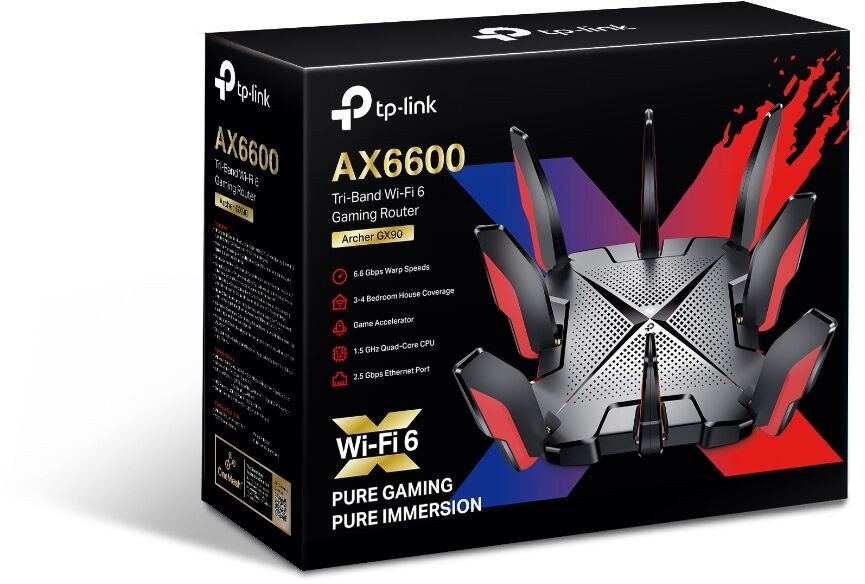 | Arvutitark OÜ | TP-LINK AX6600 Tri-Band Wi-Fi 6 Router Tootekood: ARCHERGX90 GTIN: 6935364089696 Routers - Game Band – Tri-Band structure provides a 4.8 Gbps Game Band exclusive for your gaming rigs and brings pure immersion. - Game Accelerator – Detect and optimize gaming streams, to ensure your gaming stays immersive. - Game Statistics – Real-time latency, game duration, and network resource allocation at a glance with a fine-tuned UI. - Game Protector – Keep your accounts and documents safe with the Homecare™ security system. - 2.5 Gbps Wired Connection – Unleash the potential of your next-level bandwidth network with a 2.5 Gbps WAN/LAN port. - Powerful Processing – 1.5 GHz Quad-Core CPU and 3 coprocessors ensure your network performance is always at peak operation. - Easy and Smart – Link to your router via Bluetooth and set it up in minutes with the powerful Tether app. | Kohal | 209,90 € | Poodi | |