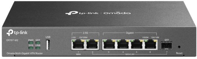 | Arvutitark OÜ | TP-Link Omada WL-Router ER707-M2 Tootekood: ER707-M2 GTIN: 4895252500738 Routers ER707-M2 Omada Multi-Gigabit VPN Router Two 2.5G ports: 1× 2.5G WAN port and 1× 2.5G WAN/LAN port ensure high connection speed. Up to 6 WAN ports: 2.5G RJ45, gigabit fiber and bandwidth load-balanced gigabit RJ45 WAN ports enhance multi-broadband capabilities. Secure VPN: Enterprise SSL/IPSec/GER§/PPTP/L2TP VPN and OpenVPN are ideal for multi-branch and WFH. Operation integrated with the Omada SDN platform: Unattended ZTP (Zero-Touch Provisioning) configuration, Central Cloud Management, Intelligent Monitoring and much more. Central management: Access from the Cloud and the Omada application provides convenient management. Reliable security: Firewall, DoS attack protection, IP/MAC/URL filtering, and even more security features. Two 2.5 Gb/s ports built for harsh environments ER707-M2 provides high data transmission via two 2.5 Gb/s ports. The device is suitable for network environments where many people visit, such as shops, hotels and offices. You can also enjoy a blazing-fast network connection while working from home. 6 WAN ports. 1 USB port for mobile broadband ER707-M2 supports various Internet access sources thanks to 6 WAN ports - RJ45 and SFP. Multi-WAN link balancing distributes data streams based on the bandwidth ratio of each WAN port to scale up the use of multiple broadband links. Connect a 4G/3G modem to a USB 2.0 port for an LTE WAN backup connection. Omada SDN a smarter cloud solution for enterprise networks The ER707-M2 router, fully integrated with the Omada SDN platform, can be managed centrally and remotely from anywhere at any time. There is also a configuration page and a dedicated application to make device management even more convenient. Easy management via the Omada app Network configuration via the application takes only a few minutes. Omada allows you to adjust settings to your preferences, monitor network status and manage connected clients - all from your smartphone or tablet. | 171,60 € | Poodi | ||