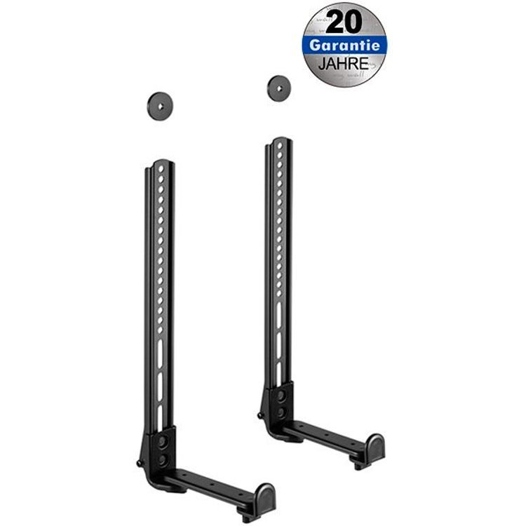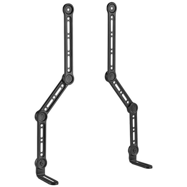 Universal soundbar mount with adjustable depth from min. 9 cm to max. 15.4 cm. Fits all popular soundbars. The brackets can also be used for wall mounting of 2x speaker boxes with a depth of 9 to 15.4 cm. The brackets ensure stable mounting on the wall. The total load capacity is 15 kg. The rubber padding on the brackets protects the speakers from scratches.