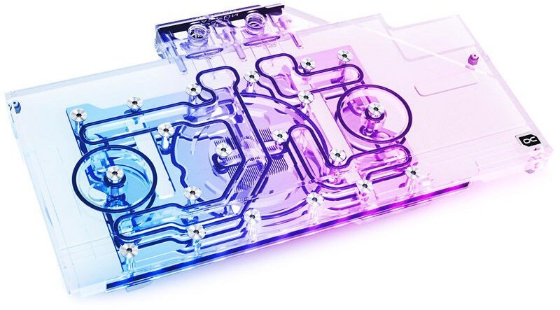 The Alphacool Aurora Acryl RADEON RX 6800/6900(XT) Eisblock combines style with performance and extensive digital RGB lighting. With experience of over 16 years, Alphacool the ability to create GPU blocks that represent high quality and fantastic performance. This perfectly describes the Aurora Acryl GPX EisblockMore Performance!During the development of the EIsblock Aurora RADEON RX 6800/6900(XT) graphic card GPU block, we wanted to further increase the performance. The first step was to move the cooler closer to the individual components by reducing the thermal pads to a thickness of 1 mm. Next, we reduced the thickness of the nickel-plated copper block. Instead of 7 mm, it is now only 5.5 mm thick. The water flow inside the cooler has also been optimized. All important components such as the voltage transformers and the memory are now significantly better and more effectively cooled by the water. All this ensures a significant increase in cooling performance.New Design!The Eisblock Aurora RADEON RX 6800/6900(XT) cooler has been designed so that lighting is more important than the previous models. The addressable digital RGB LEDs are embedded directly into the cooling block and run along the entire cooling block. The effect is an illumination of the entire cooling block. No corner or edge remains unlit by the aRGB LEDs. The new design is more angular with all edges bevelled. This promotes better light diffusion in the water cooler due to the reflections on these bevels. In addition, they create various contours, which give the Aurora RADEON RX 6800/6900(XT) Eisblock cooler its very own unique identity.Copper or Aluminium?Of course, Alphacool only uses copper for its water coolers. With the Aurora RADEON RX 6800/6900(XT) Eisblock, the copper is nickel-plated. Compared to its predecessor models, Alphacool has improved the nickel plating even further, which has considerably increased the acid resistance. This means that the nickel should resist flaking. Why does Alphacool rely on copper instead of aluminium? Simply, copper has almost twice the thermal conductivity of aluminium and is therefore clearly the better material for water cooling.Is There Anything Else New?The Eisblock Aurora RADEON RX 6800/6900(XT) also relies on the new patented stop fittings, which sit flush with the surface of the terminal. The Alphacool logo now sits in the corner on the top and is also fully illuminated. On the front of the terminal you can see the corresponding names of the compatible graphic card types. Of course, these are also fully illuminated by the digital LEDs. IN and OUT are now marked by small triangles. They are easily recognizable and fit perfectly into the entire aesthetics of the graphic card water cooler.The Alphacool Aurora RADEON RX 6800/6900(XT) Acryl is a complete redevelopment of the previous Alphacool graphics card water coolers. No technical compromises were made, but the entire technical know-how flowed into the development and implementation. Compatibility:- MSI Radeon RX 6800 Gaming X Trio 16G, 16GB GDDR6- MSI Radeon RX 6800 XT Gaming X Trio 16G, 16GB GDDR6 Technical dataDimensions (L x W x H)152 x 277 x 23 mmMaterial coolerNickle-plated copperMaterial cooler topAcrylThreads4 x G1/4“Thickness cooling fins0,6 mmIlluminationDigital RGB LEDsPower connector Digital RGB LEDs3-Pin JSTPower Digital RGB LEDs5VColortransparentTechnical data backplateDimension (L x W x H)127,5 x 277 x 6 mmMaterialAluminiumColorBlack
