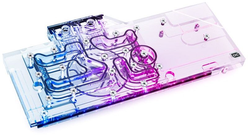 The Alphacool Eisblock Aurora Acryl GPX-A Radeon RX 6800XT/6900XT Gaming OC combines style with performance and extensive digital RGB lighting. With experience of over 16 years, Alphacool the ability to create GPU blocks that represent high quality and fantastic performance. This perfectly describes the Aurora Acryl GPX EisblockMore Performance!During the development of the Eisblock Aurora Acryl GPX-A Radeon RX 6800XT/6900XT Gaming OC graphic card GPU block, we wanted to further increase the performance. The first step was to move the cooler closer to the individual components by reducing the thermal pads to a thickness of 1 mm. Next, we reduced the thickness of the nickel-plated copper block. Instead of 7 mm, it is now only 5.5 mm thick. The water flow inside the cooler has also been optimized. All important components such as the voltage transformers and the memory are now significantly better and more effectively cooled by the water. All this ensures a significant increase in cooling performance.New Design!The Eisblock Aurora Acryl GPX-A Radeon RX 6800XT/6900XT Gaming OC cooler has been designed so that lighting is more important than the previous models. The addressable digital RGB LEDs are embedded directly into the cooling block and run along the entire cooling block. The effect is an illumination of the entire cooling block. No corner or edge remains unlit by the aRGB LEDs. The new design is more angular with all edges bevelled. This promotes better light diffusion in the water cooler due to the reflections on these bevels. In addition, they create various contours, which give the Eisblock Aurora Acryl GPX-A Radeon RX 6800XT/6900XT Gaming OC cooler its very own unique identity.Copper or Aluminium?Of course, Alphacool only uses copper for its water coolers. With the Eisblock Aurora Acryl GPX-A Radeon RX 6800XT/6900XT Gaming OC, the copper is nickel-plated. Compared to its predecessor models, Alphacool has improved the nickel plating even further, which has considerably increased the acid resistance. This means that the nickel should resist flaking. Why does Alphacool rely on copper instead of aluminium? Simply, copper has almost twice the thermal conductivity of aluminium and is therefore clearly the better material for water cooling.Is There Anything Else New?The Eisblock Aurora Acryl GPX-A Radeon RX 6800XT/6900XT Gaming OC also relies on the new patented stop fittings, which sit flush with the surface of the terminal. The Alphacool logo now sits in the corner on the top and is also fully illuminated. On the front of the terminal you can see the corresponding names of the compatible graphic card types. Of course, these are also fully illuminated by the digital LEDs. IN and OUT are now marked by small triangles. They are easily recognizable and fit perfectly into the entire aesthetics of the graphic card water cooler.The Alphacool Eisblock Aurora Acryl GPX-A Radeon RX 6800XT/6900XT Gaming OC is a complete redevelopment of the previous Alphacool graphics card water coolers. No technical compromises were made, but the entire technical know-how flowed into the development and implementation. Compatibility:- Gigabyte Radeon RX 6800 XT Gaming OC 16G (GV-R68XTGAMING OC-16GD)- Gigabyte Radeon RX 6900 XT Gaming OC 16G (GV-R69XTGAMING OC-16GD)- Gigabyte Radeon RX 6950 XT Gaming OC (GV-R695XTGAMING OC-16GD) Technical dataDimensions (L x W x H)281,5 x 130,5 x 24,5 mmMaterial coolerNickle-plated copperMaterial cooler topPOM klarThreads4 x G1/4“Thickness cooling fins0,6 mmIlluminationDigital RGB LEDsPower connector Digital RGB LEDs3-Pin JSTPower Digital RGB LEDs5VColortransparentTechnical data BackplateDimensions (L x W x H)281,5 x 106 x 6 mmMaterialAluminiumColorBlack