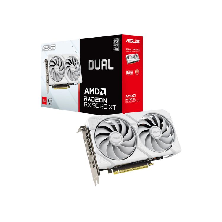 Dual Radeon RX 9060 XTDual Fans, Perfect FitASUS Dual Radeon RX 9060 XT combines powerful thermal performance with broad compatibility. Advanced cooling solutions from flagship graphics cards—including two Axial-tech fans—optimize airflow to the heatsink. Designed in a compact 2.5-slot form factor, it delivers more power in less space. These enhancements make ASUS Dual the perfect choice for gamers who want heavyweight graphics performance in a compact build.Cooling2.5-slot DesignA carefully designed shroud, heatsink, and heatpipe layout enable the two Axial-tech fans to utilize chassis side-panel ventilation, providing thermal performance that exceeds the compact size.Axial-tech UpgradesTwo proven Axial-tech fans feature a smaller hub to allow for longer blades and a barrier ring to increase downward air pressure.0dB TechnologyTo eliminate unnecessary noise, the stop mode automatically halts all fans when the GPU temperature drops below 55°C and power consumption is low.Dual Ball Fan BearingsFan bearings come in different types, each with its own advantages. Dual ball bearings provide superior durability and can last up to twice as long as sleeve-bearing designs.Vented BackplateA vented backplate significantly enhances heat dissipation, helping to keep the GPU cooler during intense tasks. This additional airflow helps ensure optimal temperatures, boosting performance, longevity, and stability by defending against overheating and thermal throttling.Unmatched ReliabilityASUS GPU GuardASUS GPU Guard applies adhesive to secure all four corners to reduce the risk of cracks.Protective BackplateThe PCB is reinforced by a backplate that adds structural rigidity, helping to prevent flex and to protect components and trace pathways from damage.Stainless Steel BracketThe mounting bracket of the Dual has been reinforced with 304 Stainless Steel, which is harder and more resistant to corrosion.EngineeringDual BIOSDo you prioritize lower core temperatures or quieter operation? Performance mode increases fan speed to keep the card running cool at all times. Quiet mode maintains the same power target and performance settings, but applies a less aggressive fan curve for quieter operation at moderate temperatures. Want more control? Customize your experience with GPU Tweak III software for fine-tuned fan profiles and performance adjustments.AutoExtreme TechnologyAuto-Extreme Technology is an automated manufacturing process that sets new industry standards by allowing all soldering to be completed in a single pass. This reduces thermal strain on components and avoids the use of harsh cleaning chemicals, resulting in less environmental impact. The result is lower power consumption during manufacturing and a more reliable, high-quality product overall.