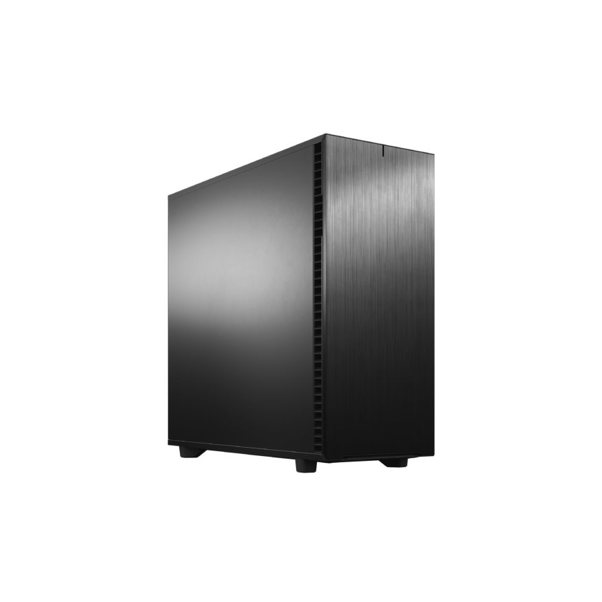 Big tower from Fractal Design in black, for motherboards up to EE-ATX, with sound insulation & dust filters, side panel made of tinted tempered glass, high air & water cooling support, incl. 3x 140-mm PWM fans & fan hub, vertical expansion slots.