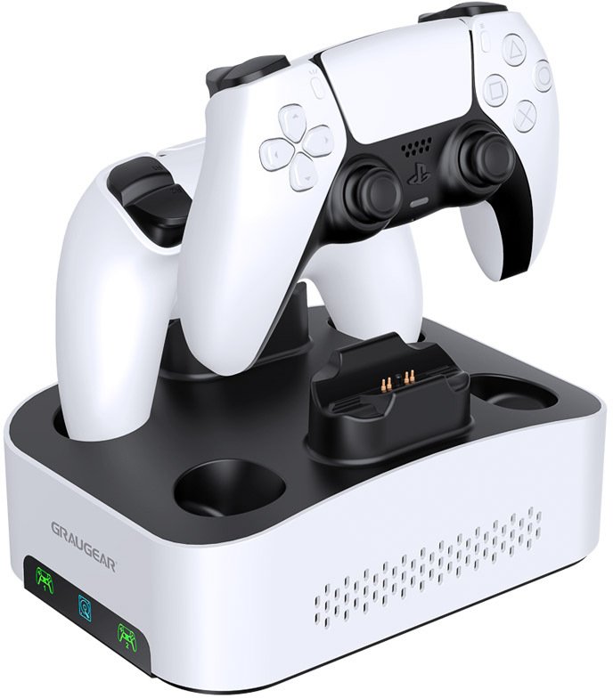 The GRAUGEAR Gaming Festplattenge is a versatile accessory designed for PlayStation 5 users. It features a USB-C connection for fast data transfer and charging capabilities. The highlight of this product is its Dual Charging Station, allowing users to charge two controllers simultaneously, ensuring you're always ready for your next gaming session. Crafted by Graugear, a brand known for its quality gaming accessories, this product is a must-have for serious PS5 gamers looking to enhance their gaming setup.