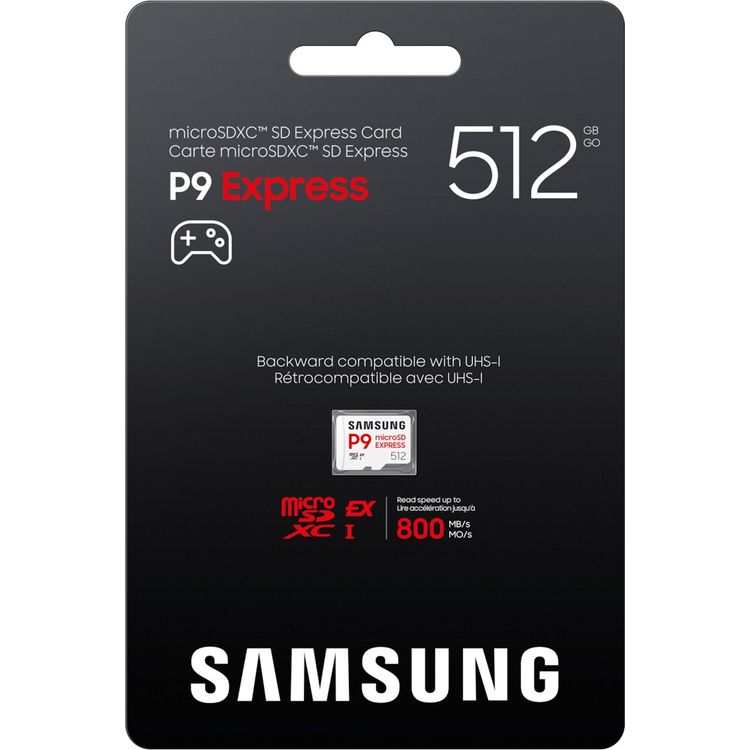 microSD Express Card P9 ExpressEnjoy smooth gaming with P9 Express, which works with Nintendo Switch™ 2. Featuring PCIe® technology for high-speed performance and Dynamic Thermal Guard (DTG) to maintain optimal temperatures, the card is designed to provide immersive gameplay for both casual and high demand gamers.Save every moment of playDive into endless solo adventures or gather for unforgettable family game nights. Your gaming universe comes alive on one powerful card, crafted to fill every adventure with joy and wonder.Speed that sparks your worldGet into your game in a flash. Featuring sequential read speeds of up to 800 MB/s—up to 4x faster than our UHS-I microSD cards[1]. This card may help minimise installation, update, and load times.Stay cool. Play non-stopEnjoy uninterrupted gaming, even when the action heats up. Dynamic Thermal Guard (DTG) keeps your card at optimal temperatures, maintaining steady performance during high-demand games. Enjoy extended sessions with minimal interruptions and fully immersive gameplay.Store your games in one compact cardStore all your favourites, save your replays, and download new titles or DLCs (downloadable content) with up to 512GB of reliable storage. Play more without the frustration of deleting your favourite games or swapping cards. Your game library is always ready for your next adventure, wherever you go.Protect your progressFrom surprise drops to marathon gaming sessions, the P9 Express is built to survive whatever life throws at you. With water[2] , temperature[3] , X-ray , magnet[4] , drop[5] , and wearout[6] protection, your gaming wins are safe.Future-ready, backward compatibleP9 Express is compatible with Nintendo Switch™ 2, while providing backward compatibility for creative devices with UHS-I slots[7]. Effortlessly capture and transfer your photos and 4K videos to your workstation and laptop seamlessly, and at your speed.Samsung Magician softwareUnlock the full power of microSD Express with Samsung Magician software - a user-friendly suite of management tools that facilitates optimal Memory card performance. Verify product authenticity, monitor drive health, and benchmark performance.When Youve Got Everything to Lose,Choose the Sure Thing.We call them files and folders. But really, theyre the pieces of your life you cant lose — the photos, the voicenotes , the videos, the moments too precious to risk.Its the lag that decides game won or game over, the bragging rights over your build, or the relief of never missing a near miss.Whatever it is. If it matters to you, it matters. While others chase the next big thing, we've been engineering the sure thing — peace of mind protection, exactly when you need it.When youve got everything to lose, choose the sure thing. Choose Samsung SSD. [1] Based on internal testing with the P9 Express microSD card 512GB measured using a PCIe test board, compared to UHS-I microSD cards tested with PRO Ultimate microSD card 512GB and Samsung readers. Actual performance may vary depending on the host device, interface, usage conditions, and other factors.[2] Water proof: up to 1 meters depth, 3% NaCl salt water, 25℃, 72hrs.[3] Temperature proof: operating temperatures of 0℃ to 45 ℃; non-operating temperatures of -40℃ to 85℃***] X-Ray proof: up to 100mGy, equal to airport X-ray machines.[4] Magnet proof: up to 15,000 gauss (magnetic field equivalent of a high-field MRI), 30 secs.[5] Drop proof: withstand drops up to 1 meters (appx. 3.3 feet), 10 cycles.[6] Wearout proof: up to 10,000 swipes.[2] The multi-proof testing results reported herein were obtained under strictly controlled lab environment, as more fully described in the respective footnote for each test. The test results referenced above are for informational purposes only and provided “as is" without warranty of any kind, either expressed or implied, including but not limited to the implied warranties of merchantability and/or fitness for a particular purpose. Any attempt to replicate such results are not covered under Samsungs warranty program and Samsung disclaims any and all liability with respect to damages resulting from such attempts, including without limitation, damage to product, loss of property, or loss of data. For more information on Samsungs warranty policy, please visit: www.samsung.com/support.[7] Compatible with devices with a microSDXC™ card slot & microSD™ Express host devices. Transfer speeds may be limited to UHS-I speeds depending on the host devices compatibility.