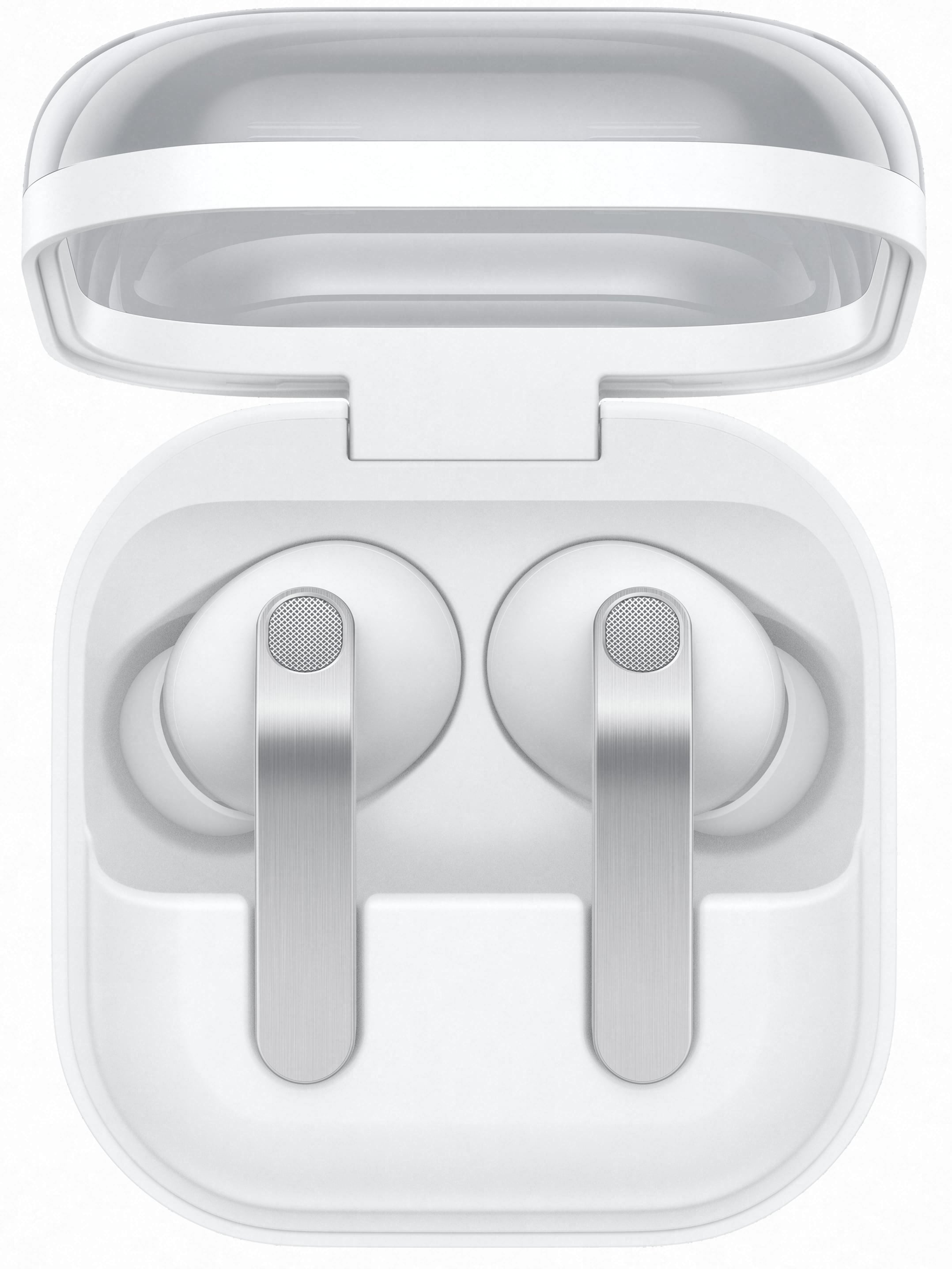 Die Galaxy Buds4 überzeugen mit einer eleganten, glänzenden Oberfläche und einem zeitlosen Look. Die Seiten aus echtem Metall prägen das hochwertige Design und sorgen gleichzeitig für eine komfortable Bedienung. Die ergonomische Form bietet dauerhaften Tragekomfort und einen sicheren Sitz, der sich natürlich im Ohr anfühlt. Für beeindruckenden Klang sorgen 1-Weg-Lautsprecher in Kombination mit einem Einzel-Verstärker. Bei Telefonaten erfassen sechs Mikrofone die Stimme rund um den Kopf und trennen sie mithilfe eines intelligenten Deep Neural Network (DNN) zuverlässig von störenden Hintergrundgeräuschen. Dadurch bleibt die Kommunikation selbst in lauten Umgebungen klar und verständlich. 360° Audio verwandelt klassische Stereo-Wiedergabe in ein immersives Klangerlebnis. Instrumente und Stimmen werden dreidimensional wiedergegeben und erzeugen eine natürliche Tiefe, die an die Atmosphäre eines Live-Konzerts erinnert. Dank Galaxy AI können Übersetzungen in Echtzeit direkt über die Galaxy Buds4 gehört und gleichzeitig auf dem Galaxy Smartphone gelesen werden. So wird Kommunikation in verschiedenen Sprachen deutlich einfacher und natürlicher. Auch die Steuerung intelligenter Funktionen gelingt besonders komfortabel. Eine AI wie Bixby kann direkt über die Galaxy Buds4 Pro angesprochen werden, um schnell Antworten zu erhalten oder Aufgaben auszuführen. Zusätzlichen Komfort bieten intuitive Kopfgesten. Durch einfaches Nicken oder Kopfschütteln lassen sich beispielsweise Anrufe annehmen oder Funktionen wie Bixby steuern.