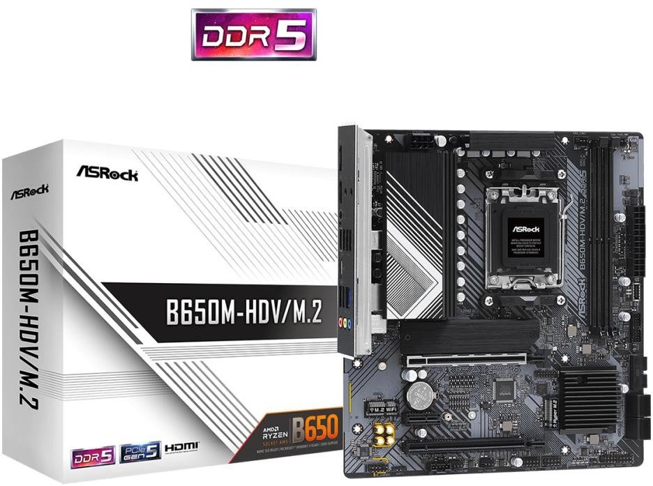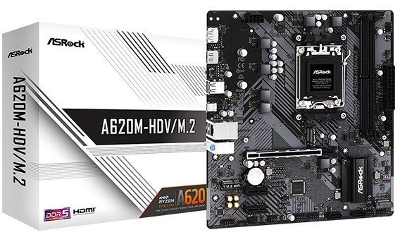 A620M-HDV/M.2 Supports AMD Socket AM5 Ryzen 7000 series processors 4+1+1 Power Phase, Dr.MOS Supports DDR5 5600+ MHz (OC) 1 PCIe 4.0 x16, 2 PCIe 3.0 x1, 1 M.2 Key E for Wi-Fi AMD RDNA 2 integrated graphics (support may vary by processor) Graphics outputs: HDMI, DisplayPort Realtek ALC897 7.1 CH HD Audio Codec, Nahimic Audio 2 SATA3, 1 Hyper M.2 (PCIe Gen4x4), 1 M.2 (PCIe Gen3x2) 5 USB 3.2 Gen1 (2 Rear, 1 Rear Type-C, 2 Front) Realtek Gigabit LAN Supports ASRock Auto Driver Installer Flashback Dr. MOS Dr.MOS is an integrated power solution, optimized for voltage synchronization in many applications! Compared to traditional MOSFETs, it intelligently supplies voltage to each phase, providing lower operating temperatures and higher performance. PCB laminate with 2oz Copper 2 ounces of copper in the inner layers of the laminate ensure stable and reliable signal transmission! The copper in the PCB guarantees low operating temperatures and high energy efficiency for overclocking. Support for the latest memory with the most extreme performance is also available! Reinforced Steel Slot [PCIe 4.0 Revision] Reinforced steel slot along with next generation PCI Express 4.0 standard. List of benefits: More soldering points Stronger latch It ensures the stability of signal transmission It guarantees stable support for even the heaviest graphics cards Audio That Matters Whether you use headphones, handsfree, external or internal speakers via USB, Wi-Fi, analog or HDMI output, Nahimic Audio offers the best sound experience, vivid and full of details. Improved Communication Quality Powerful algorithms for the best noise-free conversation, ensure a constant voice level regardless of the distance from the microphone. The Nahimic audio engine dynamically cleans the sound, removes noise and reduces voice variability. The result is better understanding and less fatigue. Static Damping Echo elimination Side Sound Reduction Voice stabilization sound tracker The Sound Tracker is a visual indicator that indicates the directions from which dominant sounds are coming. Every sound is properly positioned on the 360° radar for complete gaming immersion. Works on all devices! Enjoy vivid and high-quality surround sound on all your favorite audio devices: Jack, USB, Bluetooth, HDMI, S/PDIF. Nahimic is compatible with all your favorite audio tools and gives you the best sound with all of them. Nahimic measures and refines to optimize our technology and deliver the best experience. PCIe 4.0 High Speed M.2 solution This motherboard is ready to accept multiple M.2 devices, including support for PCI Express 4.0 M.2 SSDs, ready to run at twice the speed of the previous 3rd generation, delivering blazing fast data transfer. USB 3.2 Gen1 Type-C USB 3.2 Gen1 Type-C enables data transfer speeds up to 5 Gbps, what's more, the next-generation reversible USB design is available on the front panel of the computer case. M.2 (KEY E) for WiFi In addition to the integrated LAN port, users can also opt for 802.11ac wireless connection via the M.2 (Key E) slot. *Wi-Fi module not included. EZ Settings Automatic Driver Installation You don't have to worry about missing drivers! The ASRock board comes with a pre-installed LAN driver, offering you a convenient option to install the rest of the drivers. Step 1: Install Auto Driver Installer Step 2: Update your drivers Step 3: Done! Flashback Update BIOS with a simple click. Users can easily flash the latest BIOS with a USB flash drive and power adapter. No CPU, RAM or other components are needed.