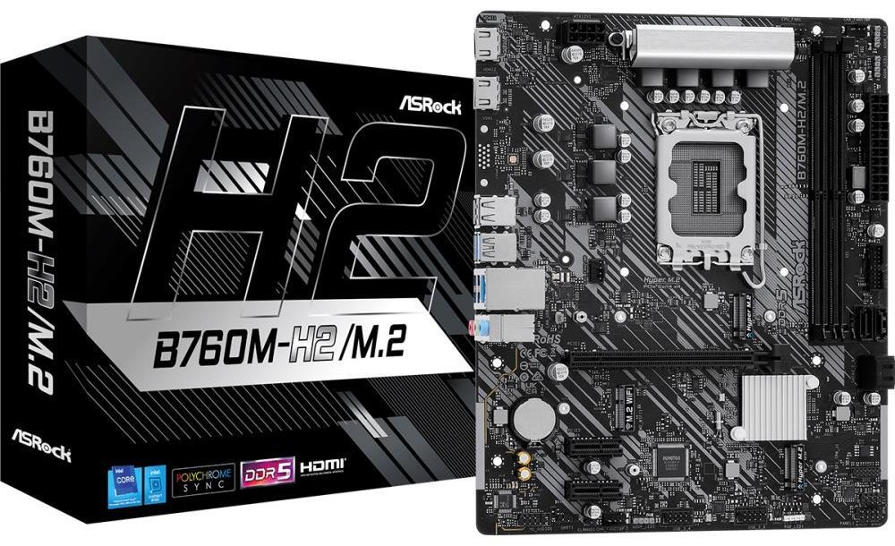 Discover the ASRock B760M-H2/M.2 motherboard, designed to elevate your computing experience. This micro ATX motherboard is compatible with 12th, 13th, and 14th Generation Intel Core processors, ensuring versatility and power for a range of uses from gaming to intensive workloads. With support for DDR5 SDRAM at speeds up to 7200 MHz (O.C.), it provides the bandwidth needed for high-speed data processing and multitasking. The inclusion of 2.5 Gigabit Ethernet offers rapid network connections, reducing lag and improving online interactions. Audio enthusiasts will appreciate the high definition audio powered by the Realtek ALC897 codec, delivering crystal-clear sound. Storage options are abundant, with 4 SATA-600 ports and 2 Hyper M.2 sockets, facilitating quick data access and boot times. The motherboard also features a robust UEFI BIOS with ASRock EZ Mode, making system setup and tuning straightforward and accessible. Whether you're building a new PC or upgrading an existing one, the ASRock B760M-H2/M.2 motherboard offers a solid foundation with its blend of performance, connectivity, and quality.
