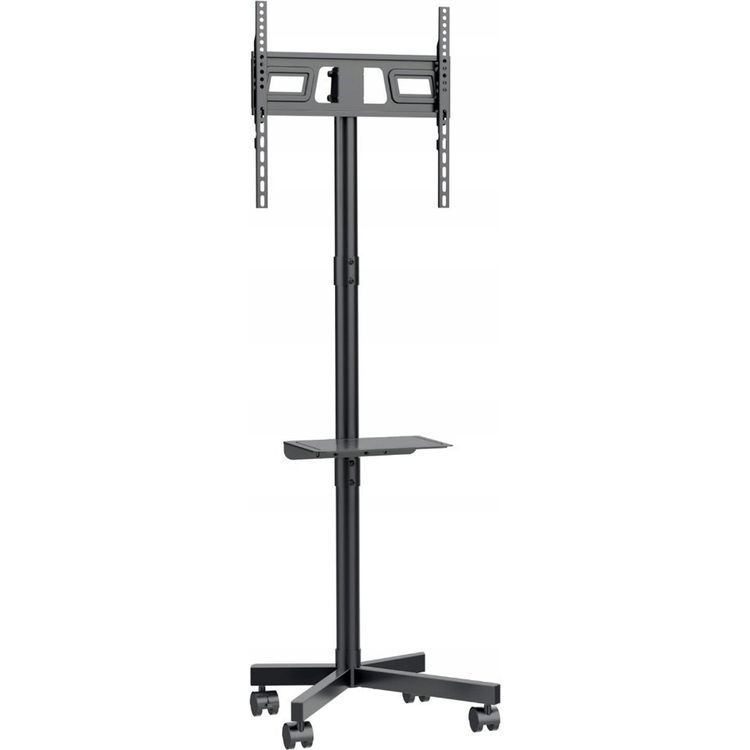 TV floor stand, 55" - 86", black Easily move your TV to any location Perfect for office and educational use Metal TV floor stand with caster wheels Supports most 55” - 86” LCD TV’s Stepless Height Adjustment Practical shelf for equipment or materials Durable caster wheels with locking mechanism VESA compatible, max. 600 mm x 400 mm