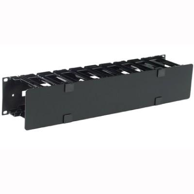 High density 2U, 6-in (150-mm) deep , horizontal cable organizer with cover. Features cable tie down slots and cable access slots in the backplane for front to back cable pass-through.Cable access slots in the backplane provide improved accessibility from the front to the rear of the enclosure for cable routingSmooth plastic fingers provide proper bend radiusCovers with snap hinges provide trouble-free access to cables