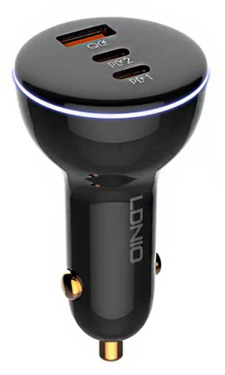 LDNIO C102 car charger, USB + 2x USB-C, 160W + USB-C to USB-C cable (black)The LDNIO C102 car charger is a state-of-the-art device that provides fast and safe charging for your smartphone and other electronic devices while traveling. Equipped with the latest Qualcomm QC4+ certified, the charger guarantees super-fast charging, reducing the time it takes to charge your device's battery.Fast chargingLDNIO C102 charger has three ports - 2 x USB-C, 1 x USB. This allows you to charge multiple devices at the same time. The hardware supports most types of phones and is compatible with Quick Charge 3.0 technology, allowing you to charge devices that support this feature faster than standard.Safety LDNIO C102 car charger is designed with safety of use in mind, so it is made of high-quality fire-resistant PC material. In addition, the device is equipped with short-circuit protection, overvoltage protection and overcurrent protection to ensure safe charging and protect your devices from damage.Producer LDNIOModel C102Color BlackInput DC12-24V 16 A max.Total power 160 W max.USB-C1 (PD)5 V/3 A, 9 V/3 A, 12 V/3 A, 15 V/3 A, 20 V/5 A (100 W max)USB-C2 (PD)5 V/3 A, 9 V/3 A, 12 V/3 A, 15 V/3 A, 20 V/5 A (max. 100 W)USB-A (QC)4.5 V/5 A, 5 V/4.5 A, 5 V/3 A, 9 V/3 A, 12 V/2.5 A (max. 30 W)C1+C2+A 100 W + 30 W + 30 WCable USB-C to USB-C