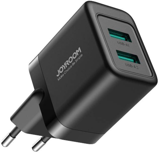 Charger Joyroom JR-TCN01, 2.4A (EU) 2 USB (Black)Charge 2 devices simultaneously and save time. The Joyroom JR-TCN01 charger is equipped with 2 USB-A ports and provides up to 2.4A. It also features wide compatibility and a lightweight, portable design - it can accompany you almost anywhere. It also guarantees complete safety of use.Hassle-free charging of 2 devices simultaneouslyThe charger is equipped with 2 USB-A ports, so you can connect up to 2 devices to it at the same time. Now you can conveniently charge your phone and headphones, for example, without waiting for one device to be ready before plugging in the next one! What's more, the 2.4A current provides impressive charging performance.Safe useEnjoy not only fast, but also safe charging. The charger is equipped with reliable protection against short-circuit, overheating and overvoltage, among other things, and its housing is made of flame-retardant PC plastic. The JT-TCN01 also has a built-in smart chip, which is responsible for optimal energy distribution, preventing damage to the batteries of the equipment being charged.Wide compatibilityWith the charger you can successfully charge most popular devices - don't worry about compatibility issues. The JR-TCN01 will work perfectly with a variety of smartphones, tablets, smartwatches, wireless headphones, powerbanks and more.BrandJoyroomName2.4A 2USB ChargerModelJR-TCN01ColorBlackInputAC 100-240 V ~50/60 Hz 0.35 A max.Output USB-A1 / USB-A25 V - 2.4 APower12 W max.MaterialFlame-retardant PC plasticDimensions81,4 x 35 x 42,5 mmWeight53 g