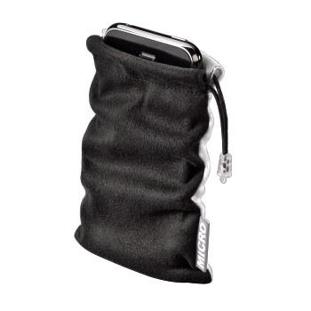Mobile phone case with protective and cleaning function. Antistatic microfibre material for cleaning sensitive displays. Universal "wellness" bag made of microfibre material. Serves as mobile phone case & cleaning cloth for displays, mobile phones, glasses, etc. Antistatic microfibre material for easy dry cleaning of the display/housing. Draw cord closure (secures the mobile phone in the case). Can be put in the handbag, trouser or jacket pocket (without belt clip). Washable (30°).