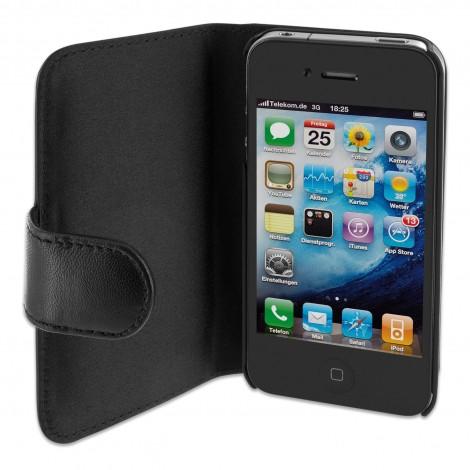 This mobile phone case protects the iPhone 4/4S against dirt and scratches. Plastic holder for ideal protection and safekeeping. Openings in the case for full access to connections and controls. The closure flap allows for secure storage.