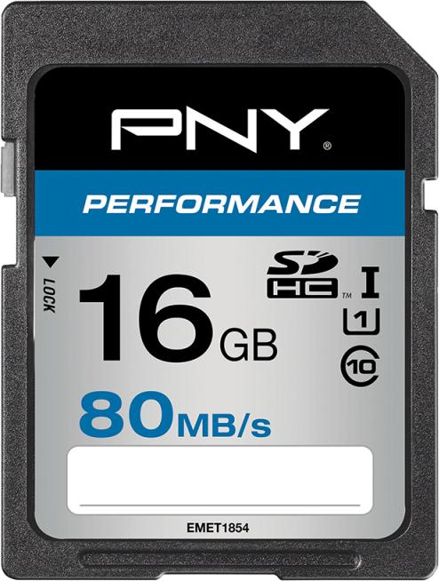 Ideal for Interchangeable lens cameras, entry level DSLRs & HD camcordersPNY’s line of Performance SD flash memory cards are the perfect solution for capturing more action or low light photos, recording HD video and increasing your storage.With transfer speeds up to 80MB/s you’ll be ready to capture any of life’s moments. Whether you’re celebrating a night out with friends, going on vacation, or trying to freeze a fast moving object, our series of Performance SD flash memory cards will be ready for you.Maht16 GBVälkmälukaardi tüüpSDHCVälkmälu klassKlass 10Lugemise kiirus80 MB/sKirjutamise kiirus20 MB/sSisemälu tüüpUHS-IKirjutuskaitse lülitiJahAndmete säilitamine10 aasta(t)Vastupidavus10000 tsüklit loogilise sektori kohtaToote värvMustKasutamistemperatuur (T-T)0 - 60 °CHoiustamistemperatuur (T-T)-20 - 85 °CSuhteline õhuniiskus kasutamisel (H-H)0 - 95 protsentiLöögikoormus kasutamisel1000 GKogus pakendi kohta1Pakendi tüüpVill