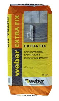 Weber Plaatimissegu Extra Fix 25kg weber Extra Fix on tsemendil baseeruv plaatimissegu, mis on mõeldud keraamiliste, klinker- ja mosaiikplaatide paigaldamiseks põrandatele ja seintele sisetingimustes. weber Extra Fix on elastne ja väga lihtsasti paigaldatav. Heade töödeldavusomadustega, suure nakketugevusega. Segul on pikk avatud- ja korrigeerimisaeg.weber EXTRA FIX sobib kasutamiseks nii kuivades kui märgades ruumides ja põrandakütte korral. Tänu suurele nakketugevusele ja elastsusele sobib Extra Fix ka plaatide kinnitamiseks vannitubades hüdroisolatsiooni peal. Sobivad aluspinnad on põrandatasandussegud, betoon, tsementkrohvid ja pahtlid, Fibo plokk, tellis, silikaat jms. Extra Fixi võib kasutada ka kaubandus- ja laopõrandate jm ühiskondlikus kasutuses olevate pindade plaatimiseks.• Materjali kulu - ca 3 kg/m²• Segu avatud aeg - 30 min (E) (EN 1346)• Sega kasutusaeg - ca 5 tundi vee lisamisest• Veekulu - 7 l/25 kg• Säilitamine - 12 kuud tootmise kuupäevast kuivas ruumis• Värvus - hall | 0 | Vaata | |||