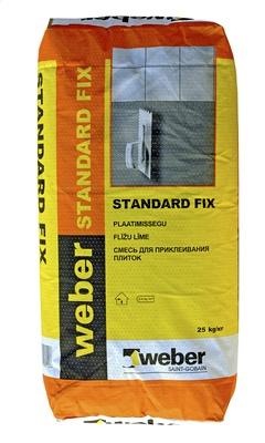 Weber Plaatimissegu Standard Fix 25kg weber Standard Fix on tsemendil baseeruv plaatimissegu, mis on mõeldud keraamiliste, klinker- ja mosaiikplaatide paigaldamiseks põrandatele ja seintele sisetingimustes. weber Standard Fix on väga lihtsasti paigaldatav ja heade töödeldavusomadusega. Suur nakketugevus ja pika avatud- ja korrigeerimisajaga. weber STANDARD FIX sobib kasutamiseks nii kuivades kui märgades ruumides ja põrandakütte korral, kuid mitte hüdroisolatsiooni peal. Sobivad aluspinnad on põrandatasandussegud, betoon, tsementkrohvid ja pahtlid, Fibo plokk, tellis, silikaat jms. Standard Fixiga võib plaatida ka suuri ühiskondlikke pindasid nagu kaubanduskeskuste põrandad, koolid jmt, kuid mitte ekstreemsete mehaaniliste koormuste korral (nt tõstukid). Suurte betoonmassiivide (põrandate) plaatimisel kui betoon on värske (uusehitused), tuleks kasutada elastset plaatimissegu weber Extra Fix.• Materjali kulu - umbes 3 kg/m²• Segu avatud aeg - ca 20 min• Sega kasutusaeg - 4 tundi vee lisamisest• Kuivamisaeg - 1-2 ööpäeva, mitteimavatel pindadel 3 ööpäeva• Nakketugevus >0,5 N/mm² (EN 12004)• Nihkumine vertikaalpinnal | 0 | Vaata | |||