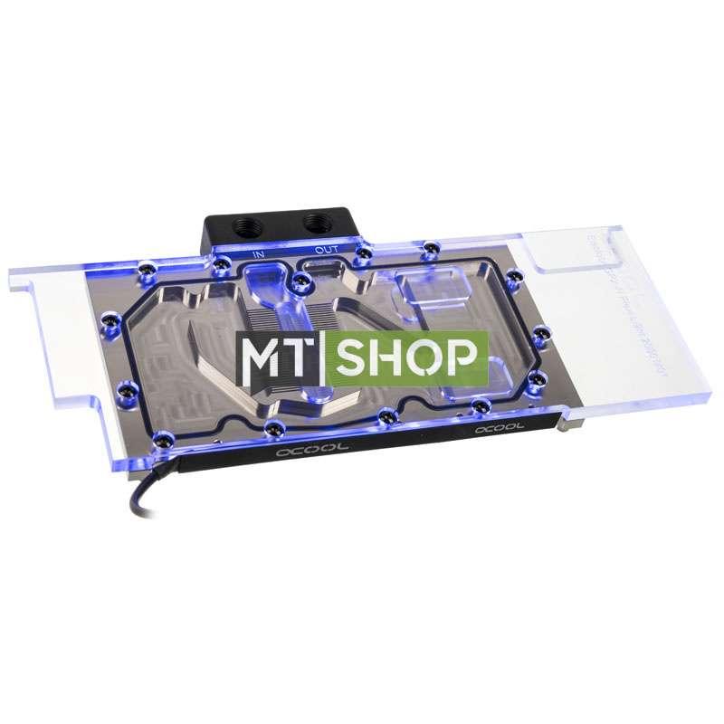 Full-Block-Wasserkühler aus vernickeltem Kupfer von aqua computer, mit Acrylglas-Deckel & RGBpx-Beleuchtung, für NVIDIA GeForce RTX 2080 Grafikkarten im Referenzdesign