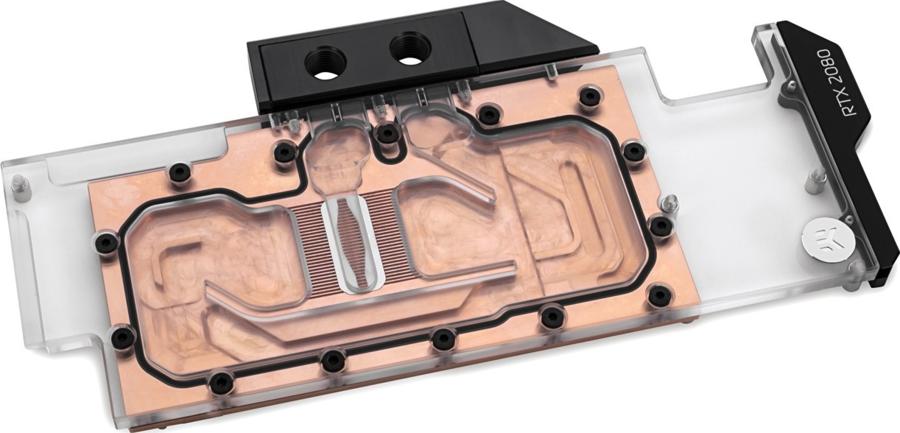 Full-Block-Wasserkühler aus Kupfer von aqua computer, mit Acrylglas-Deckel & RGBpx-Beleuchtung, für NVIDIA GeForce RTX 2080 Grafikkarten im Referenzdesign