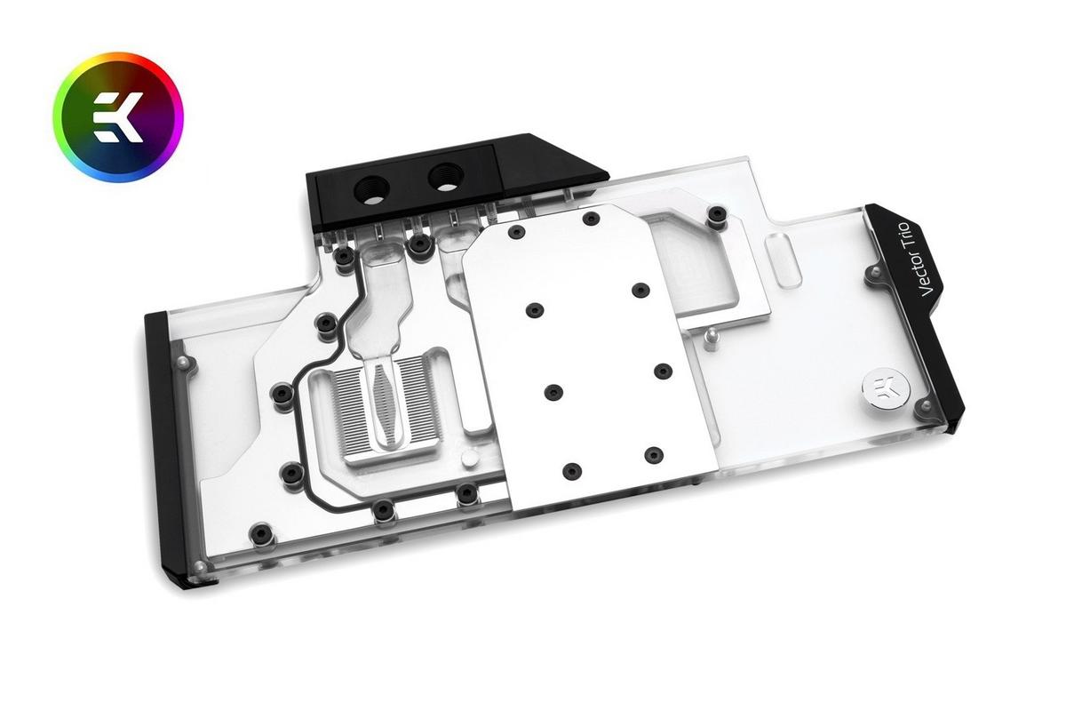 The EK Vector RTX RE RGB was created for the reference design of the Nvidia RTX 2080 and has a nickel-plated copper base. As it is a complete cooler, it reliably cools the GPU, RAM and voltage converters. The striking acetal nevertheless gives the graphics card a simple look and is rounded off by the integrated RGB LED strip. The LED strip can be connected to a compatible motherboard with a 4-pin 12VGRB connector. Since the cooler has a flat design, several graphics cards can be connected together. Technical Data: Dimensions: 281,95 x 127,70 x 16,51 mm Material Base: Nickel-Plated Electrolytic Copper Material Cover: Acetal Thread: 4x G1/4" Connection LED: 4-Pin RGB 12VGRB Compatibility: NVIDIA GeForce RTX 2080 (TU104, 8,192 MB, reference design) Scope of Delivery: EK-Vector RTX RE, Mounting Mechanism, Necessary Mounting Screws/Nuts/washers, 2x Nickel plated brass plug G1/4”, 6mm Allen Key, Thermal Pads, Thermal Grease EK-TIM Ectotherm 1g