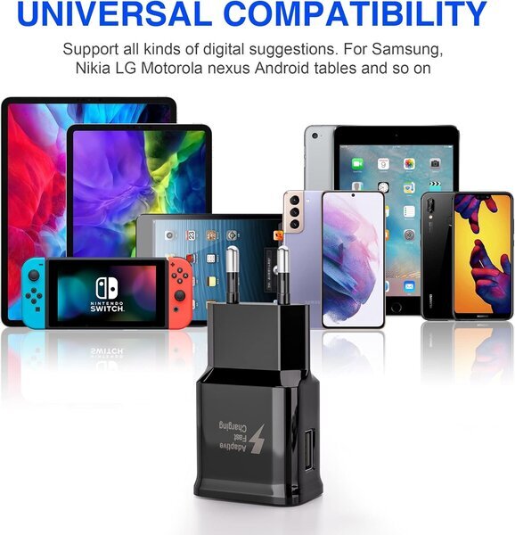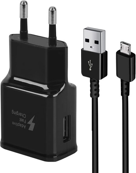 Kiirlaadija Afc 2a Usb toiteplokk 1.5 m Micro Usb kaabliga, ühildub Samsung Galaxy S7/s7 Edge/s6/s6 Edge/s5/s4/a03/j7/j3/note 5/note 4/3/lg G4/g3, Xiaomi, Redmi jne (must)