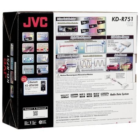 JVC KD-R451E Tootekood: KDR451E Auto audio- ja videotehnika JVC KD-R451: USB/CD-Receiver mit Bluetooth-Vorbereitung, Front-USB-/AUX-Anschluss und Digital Processing TunerDas KD-R451 Autoradio präsentiert sich mit beachtlichen Leistungsdaten, einer gelungenen Ausstattung und erweiterten Anschluss- und Nutzungsmöglichkeiten. Es ist bereits für den Anschluss eines Bluetooth-Adapters vorbereitet und bietet sowohl einen Front-USB-Anschluss als auch einen frontseitigen AUX-Eingang. So stehen dem Anwender zahlreiche Quellen zur Verfügung, um sich sein ganz persönliches Programm zusammenzustellen.Der Digital Processing Tuner garantiert einen exzellenten Klang und interessante JVC Apps speziell für Smartphones komplettieren die ansehnliche Featureliste dieses 1-DIN-Gerätes, das sich dank des großen und leicht ablesbaren Displays intuitiv und somit auch sicher bedienen lässt.Ausstattungsmerkmale des KD-R451:MOS-FET 4 x 50 W (4 x 20 W RMS)Bereit für die drahtlose Bluetooth-Technologie (mit optionalem Adapter)Front-USB-Anschluss (WAV/MP3/WMA)USB (1A)-StromversorgungLaufwerkmodus für USB-Massenspeichergeräte (Mass Storage Class)AUX-Eingang (Front)MP3/WMA /WAV-kompatibel mit ID3/WMA Tag (CD/USB)RDS-Tuner mit Digital-ProcessingRadio-TimerBackup-SpeicherParametrischer 3 Band iEQEasy EQ (einfach einstellbarer Equalizer)12-Preset EQ (12 Speicherplätze für individuelle Klangeinstellungen)Quellenabhängige EQ-EinstellungenDigital Track ExpanderLoudness-Regler und Tiefpass-Filter2,5 V Line/Subwoofer-Vorverstärker-AusgangspegelPre-Out Anschlüsse (Rear/Subwoofer umschaltbar)Subwoofer-SteuerungSeparate HelligkeitsanpassungAutomatischen DimmerfunktionAkustische Bedienunterstützung (Beep Tone Support)Für Original-Lenkrad-Fernbedienung bereitAbnehmbares Front-Panel Auf Wunsch BluetoothMit dem (optionalen) Bluetooth-Adapter KS-BTA100 lässt sich der Receiver auf Wunsch in ein richtiges Bluetooth-Gerät verwandeln, um auch ein Handy via Bluetooth bedienen zu können. Der kleine, praktisch überall leicht zu platzierende Adapter beinhaltet ein hochempfindliches Mikro sowie eine groß | 0 | Vaata | |||