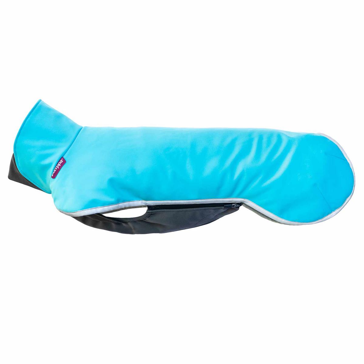 Pomppa Sportti Arctic - waterproof softshell for dogs SporttiPomppa is a lightweight, breathable, and warm softshell jacket for dogs, designed for use throughout most of the year. It is an excellent choice for all kinds of outdoor activities from early autumn to late spring. It effectively protects the most important parts of the body from cold, wind, rain, and mud. It can withstand not only light drizzles and heavier rain but also protects the dog from snow. Ideal for both daily walks and more intense activities. Thanks to its unique design, it allows full freedom of movement for the dog, making it highly valued and often used for various sports activities and training.. The jacket is made from a two-layer breathable, waterproof softshell, coated with a DWR hydrophobic layer, free from harmful fluorocarbons. The outer layer is smooth, allowing water to quickly run off. The inner side of the material features a soft, pleasant fleece that provides thermal comfort. The jacket covers the dog's back, neck, belly, and rear, protecting them from getting wet and cold. The back part extends to the lower back, while the bottom covers the chest and belly. The high, foldable collar protects the neck. A minimal number of seams reduces the risk of chafing and ensures greater waterproofness. The jacket is fastened with a waterproof zipper, covered underneath with a flap to protect the dog from chafing or accidental fur pinching. It is easy to put on and take off. It is very lightweight and does not take up much space when folded, making it easy to take on any adventure without adding weight to your luggage. Reflective elements ensure the dog's safety in poor lighting conditions.. Advantages of the SporttiPomppa Arctic softshell for dogs: protection from cold, wind, mud, and light rain, greater waterproofness, breathable fabric, fastened with a waterproof zipper, knitted insert at the front for wearing comfort, soft fleece layer underneath, no seams in critical areas that could cause leaks, coated with a hydrophobic finish without harmful substances, does not restrict the dog's movements, fits the body well and does not shift during movement, with reflective 3M piping for safety, with a place to write on the label, adjustable around the belly, lightweight, easy to fold and store, SlimFit cut, easy to put on and take off, waterproof: 10,000mm water column, breathability: 10,000 g/m2/24h, machine washable for independent use, durable for years of daily use, color: blue.. How to care for your Pomppa dog clothing: avoid unnecessary washing. Besides water consumption, frequent washing causes wear and tear on the fabric and its coating. If there are no visible stains or dirt, try airing the product in a well-ventilated area or place it in the freezer to eliminate any odors. If necessary, wash the clothing in the washing machine on a gentle cycle at 30°C. Do not use aggressive detergents, stain removers, bleach, or fabric softeners. After washing, hang the clothing to dry; do not tumble dry, iron, or dry clean. The outer layer is coated with a hydrophobic finish, which degrades after multiple washes. You can restore it using impregnation products commonly available in outdoor clothing stores.. Choosing the right size: A well-chosen size ensures the best possible thermal protection and allows full freedom of movement for the dog. The appropriate size protects the most important muscle groups and guarantees that the clothing will stay in place even during sprints or wild jumps. Pomppa jackets and sweatshirts are designed to fit various dog shapes: slim, with a wide chest, or with pronounced and developed musculature. When selecting a size, it is important that the jacket does not restrict the dog's mobility or cause discomfort in any way. The decisive factor in choosing the right size for the KuoriPomppa jacket is the length of the dog's back. We recommend avoiding choosing a smaller size than indicated by the length of the dog's back. Depending on the dog's proportions and type of fur, the proper size may be larger than the size according to back length. Another important factor to consider is that the SporttiPomppa jacket has a SlimFit cut and should fit snugly to the dog's body. However, it should also accommodate the dog's fur underneath (important for dogs with thick coats). The material from which the SporttiPomppa is made is not very stretchy. If the dog's measurements fall between two sizes, we recommend choosing the larger size.. About the brand: The first Pomppa products were created by the brand's founder, Meri Alku. Participating in numerous agility competitions with her dogs, she searched for suitable clothing for her pets that would meet the requirement of combining adequate thermal protection with full freedom of movement. | 0 | Vaata | |||