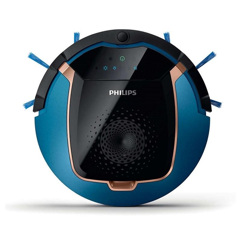 Infrapunaandurid takistuste tuvastamiseks ja vältimiseksUus Philipsi robottolmuimeja on varustatud 6 infrapunaanduriga, mis tuvastavad ja väldivad takistusi nagu seinad, lambid ja juhtmed, et teie põrandate puhastamine mööduks tõrgeteta. Viimaks saate nautida puhast maja, ise midagi tegemata. Planeerige oma iganädalane puhastamineTolmuimejal on nädalane ajaplaneerimisfunktsioon, mis võimaldab järgmise puhastuskorra nädal aega ette programmeerida või määrata igale päevale erineva puhastamise aja ja näiteks ühe päeva välja jätta. Robot aktiveerub ka siis, kui te ise kodus pole, et saaksite nautida puhast maja. 3-etapiline puhastussüsteem koos kuivpesufunktsioonigaEsmalt pühivad kaks pikka harja roboti teele jääva mustuse ja tolmu. Seejärel tõmbab otsak tänu võimsale mootorile mustuse ja tolmu endasse. Viimaks aitab klõpsuga kinnitatav pesupadi puhastada põrandatelt ka kõige peenemat tolmu. Robot tuvastab kõige mustemad kohad põhjalikumaks puhastamiseksTolmuanduri abil tuvastab robot automaatselt kõige tolmusemad kohad ja püsib mõned sekundid nendes piirkondades, et kogu mustus eemaldada. 4 puhastusrežiimi kohanduvad erinevate aladega4 puhastusrežiimi kohanduvad erinevate aladega teie kodus. Kui robot avastab suurema vaba pinna, sõidab see Z-režiimis ehk siksakiliselt. Põrkerežiimis sõidab robot sirgjooneliselt ja objekti vastu põrgates valib uue suvalise suuna. Spiraalrežiimis liigub robot suureneva raadiusega spiraalis. Seinu järgivas režiimis püsib robot seinte lähedal ja nendega paralleelselt. Kaugjuhtimispult roboti eemalt juhtimiseksKaugjuhtimispult võimaldab robottolmuimejat ja mitut selle funktsiooni eemalt juhtida. Saate anda robotile alustamis- ja lõpetamiskäsu, suunata selle igasse suunda, muuta puhastamise marsruuti või käskida sellel tagasi dokkimisjaama suunduda. Nutikas tuvastussüsteem kohandub kõigi keskkondadegaUuel robottolmuimejal on nutikatest protsessoritest, kuni 20 andurist, güroskoobist ja akseleromeetrist koosnev nutikas tuvastussüsteem, mis võimaldab robotil tõhusalt ja iseseisvalt puhastada. Robot mõistab keskkonda ja valib teie kodu puhastamiseks optimaalse ja kiireima strateegia. Robot ei jää kinni ja naaseb vajaduse korral oma dokkimisjaama. TriActive XL otsak koristab ühe tõmbega kaks korda suurema pinnaTriActive XL otsak tagab tõhusa ja põhjaliku puhastamise senisest kaks korda kiiremini. 1. Eriti lai otsak puhastab ühe tõmbega kaks korda suurema põrandapinna. 2. Kolm imiava koguvad tolmu nii eest kui ka külgedelt. 3. Painduv riba kogub kokku kogu mahajäänud tolmu. 4. Kontuure järgivat otsakut kasutades on jõudluse kadu erinevatel põrandapindadel minimaalne. Võimas liitiumioonaku tagab 90 minutit tööaegaVõimsal liitiumioonakul on tavapäraste akudega võrreldes pikem tööiga ja lühem laadimisaeg. Uus robottolmuimeja töötab kuni 90 minutit järjest. Tolmumaht 0,4 lLaadimisaeg 3,5 tundiLiitium-ioon akuAku pinge 14,8VTööaeg 90 minToote mõõtmed: 80 × 330 mm Komplektis: Vahelduvvoolu toiteadapter1 x filterBaasjaamKülgmised harjad (1 paar)KuivpesuhariKaugjuhtimispult