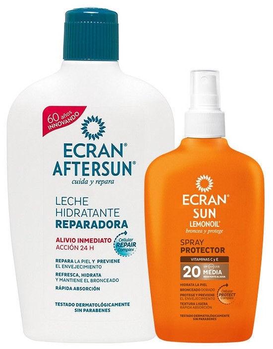 Ecran Set After Sun Lotion 400ml + Protective Spray Spf20 100ml Toote kirjeldus inglise keeles:Discover the ideal pack to forget the problems of the Sun and start enjoying its many beneficial properties for the skin and well-being in general. How? Well, with the Lemonoil SPF20 + Protective Spray pack, the Ecran Sun Moisturizing Repairing Milk, experts in sun protection.Ecran Sun Lemonoil Spray Protector SPF20A sunscreen with SPF20 protection factor, ideal for skins that do not need a high solar protection. Its formula enhances natural tanning and prevents aging thanks to the PROTECT Complex Cell technology. Its texture is very soft and we will hardly notice that we are wearing it and it is a cream rich in vitamins C and E, two essential vitamins for the care and hydration of the skin.Replenishing Moisturizing Milk from Ecran SunGreat for the days when we have been many hours in the sun and our skin has been irritated. It provides instant relief by being fast absorbed while repairing the skin and preventing aging. It has numerous moisturizing properties for the skin and is able to prolong the tan. It is a perfect cream to apply after long days exposed to the Sun. | 0 | Vaata | |||