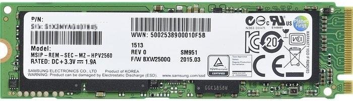 SSD 256GB Samsung 950 PRO seeria MZ-V5P256BW M.2 PCIe 3.0 x4 (up to 32 GB/s) NVMe 1.1, 2200MB/s lugemine, 900MB/s kirjutamine, uus 3D V-NAND tehnoloogia, AES 256-bit for User Data Encryption