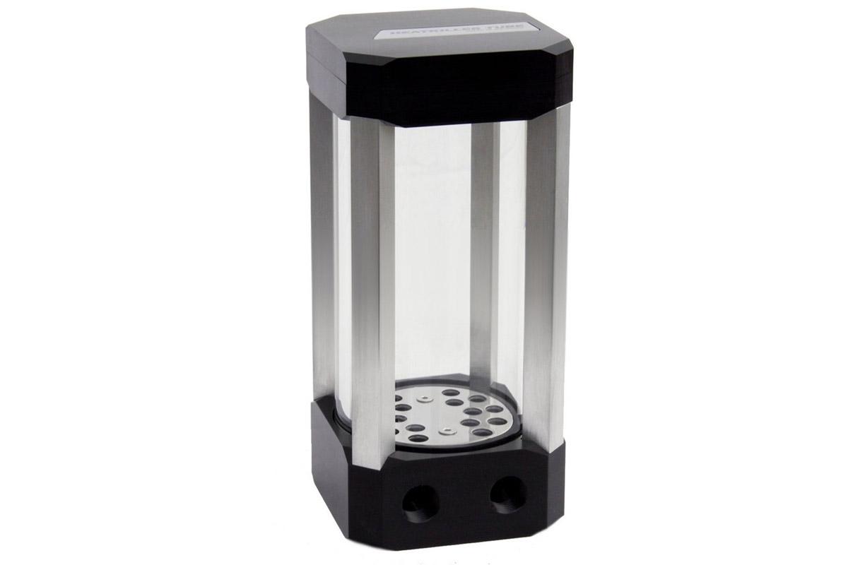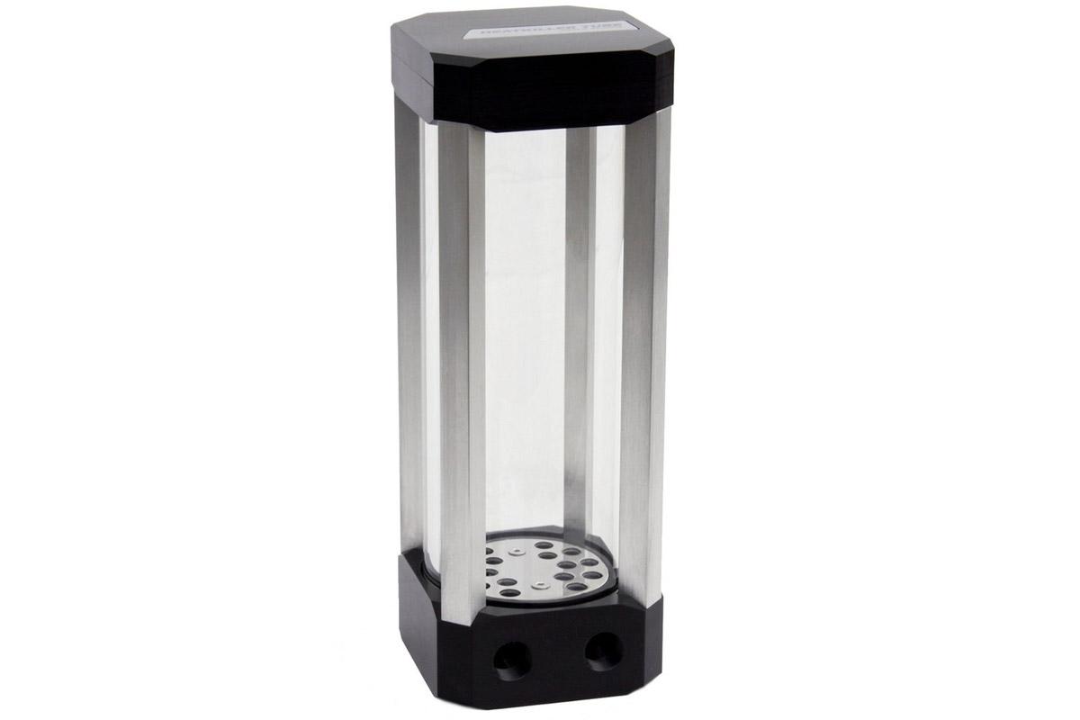 Watercool HEATKILLER® Tube 100 BASIC The HEATKILLER® Tube Series is a modular series of high end reservoirs with a glass tube made from borosilicate glass. It has some outstanding features which are listed here. Large filling mouth Thanks to a large filling mouth and a bayonet catch lid the HEATKILLER® Tube Series reservoirs can be opened without any tools and is easy to fill. It has never been easier to re-fill a cooling medium. Borosilicate glass tube Borosilicate is a glass with very high chemical and thermic resistance. It is scratch-resistant and has very low heat expansion. These outstanding features make borosilicate an ideal material for reservoirs. Three sizes To account for different space availability in current cases, the HEATKILLER® Tube Series reservoir glass tubes are available in sizes 100mm, 150mm and 200mm. Three versions Besides a standalone version, there are versions with direct connections for pumps. They support D5 and DDC pumps by Lowara (formerly known as Laing) and their derivatives. Large volume In designing the HEATKILLER® Tube Series, we took great care not to waste any of the available volume. That makes the HEATKILLER® Tube Series reservoirs very low maintenance, because they need fewer re-fills. Anti- Cyclone-effect The exclusively developed anti-cyclone-inlay which is located at the bottom of the reservoir prevents vortices that easily form in reservoirs. This reduces noise levels and makes air bleeding easier. Streaming-optimized pump chambers The pump adapter for D5 and DDC pumps comes with a streaming optimized pump chamber. This causes fewer vortices during use, which has a positive effect on both flow rate and air bleeding. Made in Germany The HEATKILLER@ Tube Series reservoirs are completely produced in Germany. Extensive optional accessories The HEATKILLER@ Tube Series reservoirs have various optional features, for example: Variable Mounting systems For optimal integration into a water cooled system we offer different mounting systems to fit your build. …horizontal mount (pedestal) Two different height pedestals are available for mounting the HEATKILLER@ Tube Series reservoir to the case floor or free-standing. … vertical mount A multifunctional bracket mount offers options for vertical montage. Several adapters are available. Some can be used to attach the reservoir to 120x120mm or 140x140mm cooler slots. Others allow for a montage of the reservoir on a radiator from the MO-RA3 series. Illumination HEATKILLER@ Tube Series reservoirs can be set in scene with LED illumination. We offer splash-safe LED strips in various colors. The strips are hidden in the struts of the reservoir cage. Colored struts To customize your HEATKILLER@ Tube Series you can exchange the default struts. We offer aluminum struts in natural color or with a choice of anodized colors. Technical data Material cover: POM Material struts: bare aluminium Tube: borosilicate glass Material bottom: POM Material Inlay: stainless steel Measurements (LxWxH): 70 x 70 x 148,5 mm Tube length: 100mm Tube diameter: 65mm Capacity: aprox. 250ml Weight: aprox. 640g Seal: NBR, VMQ Connection thread: 2x G ¼ inch (DIN ISO 228-1) Scope of delivery: 1x HEATKILLER® Tube 100 BASIC 1x manual | 0 | Vaata | |||