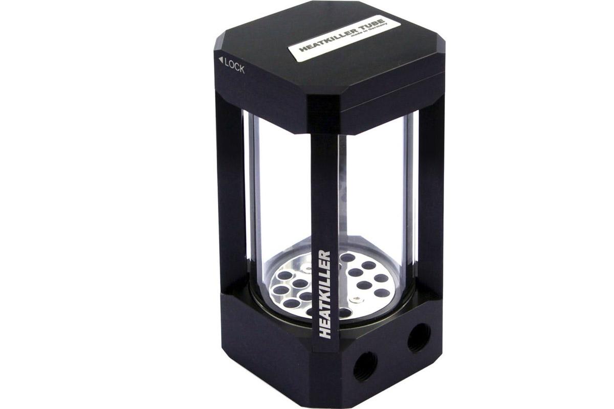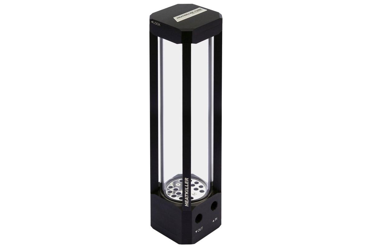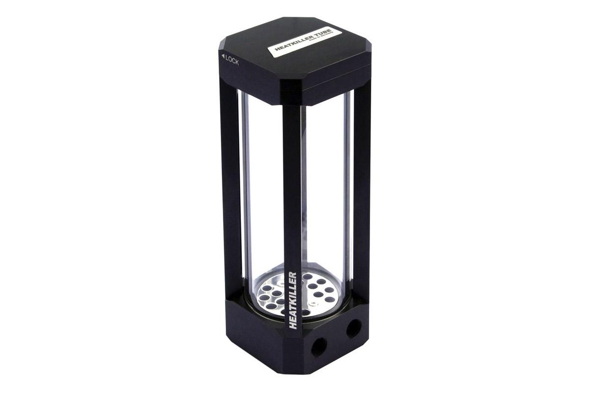 Watercool HEATKILLER® Tube 100 The HEATKILLER® Tube Series is a modular series of high end reservoirs with a glass tube made from borosilicate glass. It has some outstanding features which are listed here. Large filling mouth Thanks to a large filling mouth and a bayonet catch lid the HEATKILLER® Tube Series reservoirs can be opened without any tools and is easy to fill. It has never been easier to re-fill a cooling medium. Borosilicate glass tube Borosilicate is a glass with very high chemical and thermic resistance. It is scratch-resistant and has very low heat expansion. These outstanding features make borosilicate an ideal material for reservoirs. Three sizes To account for different space availability in current cases, the HEATKILLER® Tube Series reservoir glass tubes are available in sizes 100mm, 150mm and 200mm. Three versions Besides a standalone version, there are versions with direct connections for pumps. They support D5 and DDC pumps by Lowara (formerly known as Laing) and their derivatives. Large volume In designing the HEATKILLER® Tube Series, we took great care not to waste any of the available volume. That makes the HEATKILLER® Tube Series reservoirs very low maintenance, because they need fewer re-fills. Anti- Cyclone-effect The exclusively developed anti-cyclone-inlay which is located at the bottom of the reservoir prevents vortices that easily form in reservoirs. This reduces noise levels and makes air bleeding easier. Streaming-optimized pump chambers The pump adapter for D5 and DDC pumps comes with a streaming optimized pump chamber. This causes fewer vortices during use, which has a positive effect on both flow rate and air bleeding. Made in Germany The HEATKILLER@ Tube Series reservoirs are completely produced in Germany. Extensive optional accessories The HEATKILLER@ Tube Series reservoirs have various optional features, for example: Variable Mounting systems For optimal integration into a water cooled system we offer different mounting systems to fit your build. …horizontal mount (pedestal) Two different height pedestals are available for mounting the HEATKILLER@ Tube Series reservoir to the case floor or free-standing. … vertical mount A multifunctional bracket mount offers options for vertical montage. Several adapters are available. Some can be used to attach the reservoir to 120x120mm or 140x140mm cooler slots. Others allow for a montage of the reservoir on a radiator from the MO-RA3 series. Illumination HEATKILLER@ Tube Series reservoirs can be set in scene with LED illumination. We offer splash-safe LED strips in various colors. The strips are hidden in the struts of the reservoir cage. Colored struts To customize your HEATKILLER@ Tube Series you can exchange the default struts. We offer aluminum struts in natural color or with a choice of anodized colors. Technical data Material cover: POM Material struts: black anodized aluminium Tube: borosilicate glass Material bottom: POM Material Inlay: stainless steel Measurements (L x W x H): 70 x 70 x 148,5 mm Tube length: 100mm Tube diameter: 65mm Capacity: aprox. 250ml Weight: aprox. 640g Seal: NBR, VMQ Connection thread: 2x G ¼ inch (DIN ISO 228-1) Scope of delivery: 1x HEATKILLER® Tube 100 1x manual | 0 | Vaata | |||