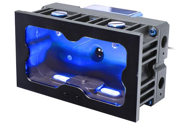 Monsoon Series Two DDC Premium Dual 5.25" Reservoir - Blue Tootekood: M2-DDCP-BL Jahutid ja lisad For a limited time, all Monsoon S2 reservoirs will ship with FREE color matched Silver Bullet antimicrobial plugs already installed—a 12.00€ value! Remember to remove the rubber antitarnish cover from the plugs before use. For more information, please refer to the user's manual included with your reservoir or available for download here. Building on the original Monsoon's success, the new Monsoon Series Two D5 Basic features a host of design refinements and improved modularity all aimed at making it easier to use, quieter, and a better overall value. The new vibration dampening mounting system is the industry's first and only 100% decoupled mounting solution and substantially reduces the amount of sound generating vibration transmitted from your pump to your chassis. The 40% glass filled molded nylon main body now features sound dampening cavities that work on the same principles as the baffles in a car muffler or the sound dampening material on the walls of a recording studio—each time you redirect a sound wave it loses energy. The new LED lighting board has been moved to the bottom of the reservoir to prevent accidentally getting it wet if the user overflows the top fill port catch basins and the board now features RGB color changing LED's that allow the user to scroll through the color presets and select the perfect light/color for their build. It also now has a chip that retains your brightness setting and light color selection on power down. The pump back is precision machined PVC and because the reservoir is fully modular, the pump backs, face plates, motor mounting hardware, and color matched screws and stop plugs can be mixed and matched to suit your current and future builds. All screws are color coordinated stainless steel and the included stop plugs are color coordinated machined brass. Sleeving is premium triple strand triple weave and the Molex plug is black. Features: Ships fully assembled—just add your pump! Premium silicone rubber decoupled case mounting for enhanced vibration isolation and noise reduction. Molded 40% glass filled nylon main body with sound dampening cavities. Larger overflow basins and dual top fill ports for easy filling and trouble free air bleeding and maintenance. Precision machined PVC pump back is fully modular making it easy to switch from a D5 to a DDC or to a six port non pumped reservoir. Optional 6mm all aluminum face plate (sold separately) can be swapped at any point thanks to the fully modular design. Premium stainless steel screws are color coordinated and match all the Monsoon fitting colors. Premium brass stop plugs are also color coordinated and match all of the Monsoon fitting colors. LED lighting board features RGB LED's allowing the user to select the color they want and the board now retains its current brightness and color setting on power down. LED lighting switch buttons are also color coordinated. LED board features premium triple strand triple weave sleeving with black Molex plug and pro class installation. All plug and reservoir O rings are premium silicone. Includes all wrenches, mounting screws, stop plugs, comprehensive instruction manual, and a limited one (1) year warranty, (see instruction manual for full details). | 0 | Vaata | |||