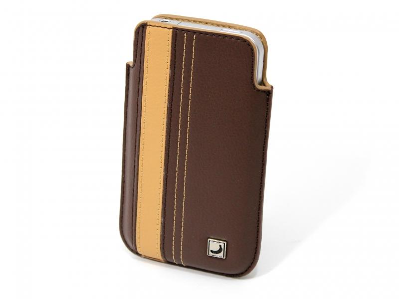 SmartGuy: The nobleman of the Cool Bananas world. 100 percent fine cowhide, 100 percent needlework, 100 percent noble, pure design: This smooth sleeve is for the ambitious ones. The snug pouch fits the iPhone perfectly. The inner colour accented microfibre lining ensures a clean display for the perfect view. High quality workmanship, perfect fit, functional - the SmartGuy speaks for itself. Coloured stichting and applications give the chocolate brown sleeve its distinctive touch.