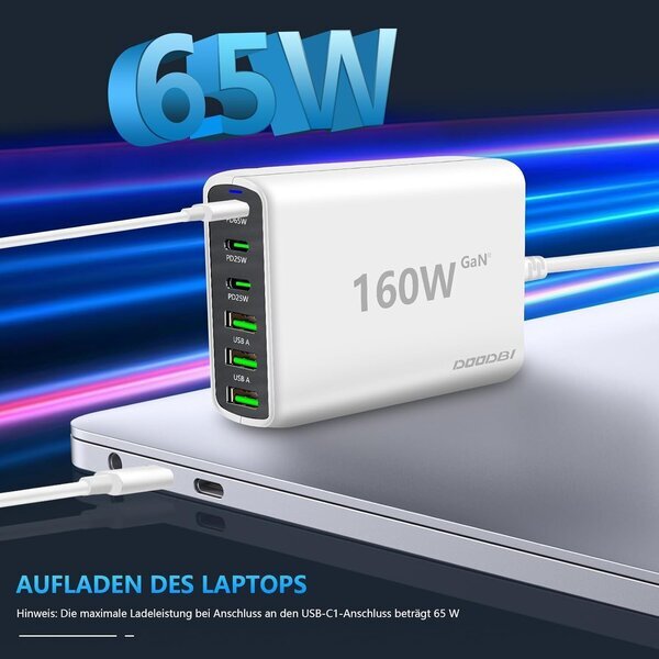 160 W Usb C laadija, 6 pordiga Usb laadija Multiple [3 Usb-c + 3 Usb-a], toiteplokk Usb Gan Iii Pd & Qc 3.0, kiire Usb C laadija, ühildub Macbook/iphone 15/14/13/12/ipad/samsung/galaxy S23