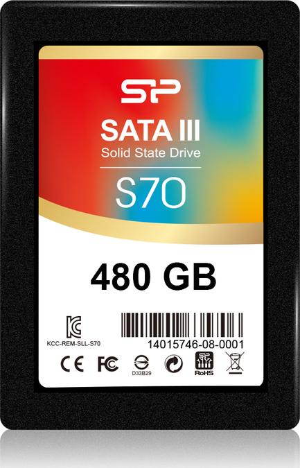 Töökindel ning kiire SSD ketasSilicon Power S70 SSD kettad kasutavad SATA III 6 Gb/s liidest ning seadme järjestikune lugemiskiirus küündib kuni 520 MB/s ning kirjutuskiirus 460 MB/s tasemeni. See võimaldab suuri andmeid kettal liigutada mitmel rakendusel samaaegselt ilma, et süsteem aeglaseks muutuks. Ketta sees kasutatav sünkroonne NAND mälu tagab väikese voolutarbe ning madala töötemperatuuri, mistõttu on ketta eluiga väga pikk.Pikem eluiga tänu 3000 P/E tsüklileTänu sünkroonse NAND välkmälu kasutamisele toetab seade 3K P/E tsüklit (3000 kirjutamist/kustutamist ühe mäluraku kohta). See on tunduvalt kõrgem, kui tavapärane 1-2,5K P/E tsüklit enamlevinud SSD ketaste NAND mälul. See omakorda tähendab, et seadme eluiga on kordi pikem ning vastupidavus suurem. Lisaks, seadme jõudlus ei muutu aja jooksul, samas voolutarve püsib ühtlaselt madal.Parem vastupidavus, turvatumad andmedSilicon Power Slim S70 ketta puhul on väga suur rõhk pandud andmete turvalisusele. SSD kontroller hoiab konstantselt mälublokkidel silma peal ning kui ühes tuvastatakse viga, markeeritakse see kasutuskõlmbatuks ning asendades teise mälublokiga. Selline lahendus on võimalik tänu sellele, et lõpptarbijal ei ole võimalik kogu mälumahtu korraga tarvitusele võtta ning seadme mahutavus on markeeritult väiksem kui kogumälu kokku (512 GB asemel 480 GB). See samas omakorda hoiab sinu andmed turvalisena ning pikendab seadme eluiga.Toetab mitmeid turvalisust tõstvaid süsteemeS70 on üks õhemaid ning kergemaid SSD kettaid omas klassis, samas on see ka põrutus- ning vibratsioonikindel tänu liikuvate osade puudumisele. Lisaks toetab Slim S70 SSD ka S.M.A.R.T. monitoorimist ning ECC tehnoloogia on juba mälukontrollerisse sisse ehitatud.Disainitud ultrabook sülearvutite jaoksUltrabook sülearvutid on saanud mobiilsete tööjaamade standardiks, kuid eeldavad ka õhemate ketaste kasutamis. Seetõttu on S70 loodud ainult 7 mm paksusena, et see mahuks suurepäraselt ka õhemate sülearvutite sisse.5 aastat gar