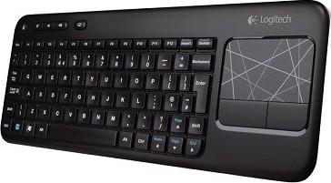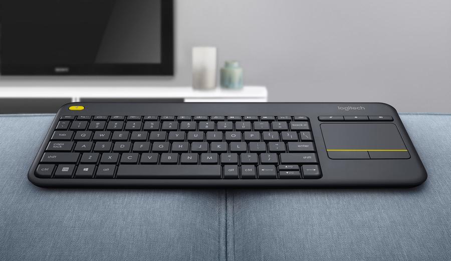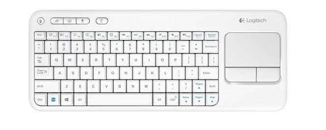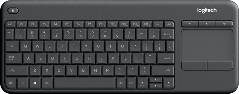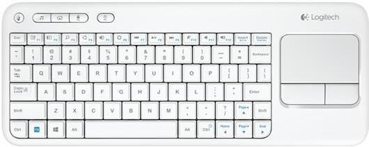 For wireless control of your laptop—even when it’s connected to your TV.• Logitech Advanced 2.4 GHz wireless connectivity with 10-metre range (33 feet)*• Large 9-cm (3.5-inch), built-in touchpad with multi-touch navigation and large left- and right-click buttons• Plug-and-play setup with Logitech Unifying receiver• Whisper-quiet, low-profile keys with bold, bright white characters and a UV coating• 12-month battery life** and on/off switchLogitech Wireless Touch Keyboard K400. For wireless control of your laptop—even when it’s connected to your TV. You can control your laptop without getting up from the couch thanks to the 10-metre (33 feet) wireless range. The large 9-cm (3.5-inch), built-in touchpad with multi-touch navigation makes vertical and horizontal scrolling intuitive. Setup is simple, too. You just plug the tiny Logitech Unifying receiver into a USB port—no software needed. You can even add five more compatible devices to the same receiver. The sleek, low-profile keys feel good and barely make a sound. And you can enjoy it all for up to a year without the hassle of changing batteries.