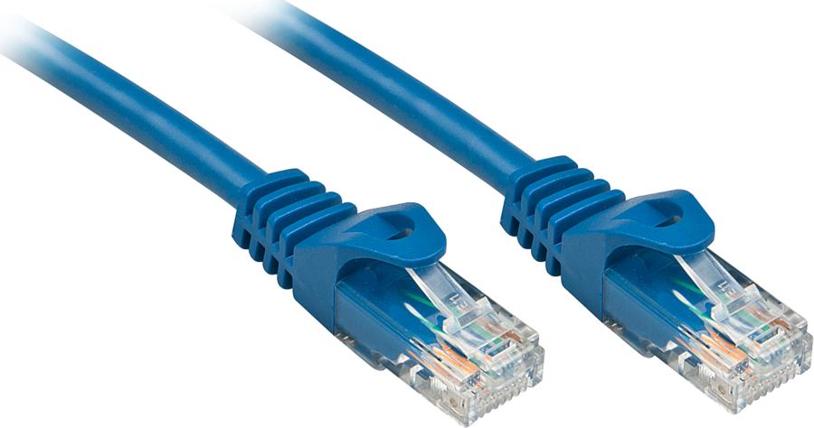 Twisted Pair Patch Cable with RJ45 connectorsCat.6 U/UTP, CCA Integrated snagless connector for latch protectionGold plated pins for better conductivity and elimination of signal loss10 year warranty Cat.6 U/UTP CCA network cable with support for bandwidth up to 250MHz and features a snagless design with gold plated contacts for ethernet standards up to 1GBase-T. Cat.6 cable for operating frequencies up to 250MHz. The unshielded version (U/UTP) can be used for Gigabit Ethernet thanks to the special design of the electrophysical parameters (NExT, FExT, etc.) despite the lack of shielding. These cables are manufactured and tested according to the ISO/IEC 11801 specification. The cables are packaged individually in a polybag. The gold-plated contacts ensure reliable, corrosion-free connections over extensive periods of time. A robust snagless strain relief design prevents damage to the connector latch during installation and removal. The high frequencies used in network technology cause a high current load in the outer layers of the conductors due to the "skin effect", while the conductor cores are only subjected to very low electrical loads. This allows the use of copper clad aluminium (CCA) conductor material, making this cable more cost-effective than pure copper cables. Available lengths: 0.3m, 0.5m, 1m, 2m, 3m, 5m, 7.5m, 10m. Available colours: Grey, Blue, Red, Black, White.