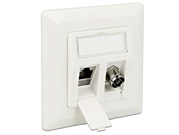 Seda Delocki seinapistikupesa saab paigaldada seinale või 60 mm paigaldusavadega tagakarbile. Tänu oma standardiseeritud mõõtmetele sobib see 2 Keystone'i mooduli lihtsaks paigaldamiseks. Spetsifikatsioon - 2 Keystone'i pesa 19,2 x 14,9 mm - Keystone-moodulite 40° nurk - Tolmukatted - Integreeritud plaat - Disainile sobiv keskplaat 50 x 50 mm - Paigaldusavad 60 mm - Värv: puhas valge RAL 9010 - Mõõtmed (LxSxK): ca. 80 x 80 x 23,6 mm Pakendi sisu - Keystone seinapistikupesa