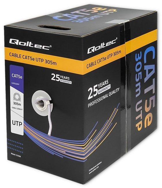 Patchcord UTP cable CAT5E, 305mUTP CAT5e cable by Qoltec with a length of 305 m designed for indoor installations especially in data communication networks, computer networks, power transmission, data transmission and monitoring systems. The cable can also be used for transmission of digital HDTV.